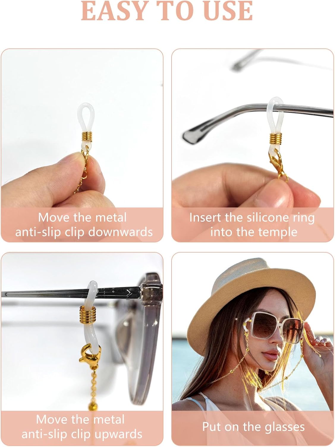 Colour: gold/gentle gold/silver/rose gold/black glasses chain