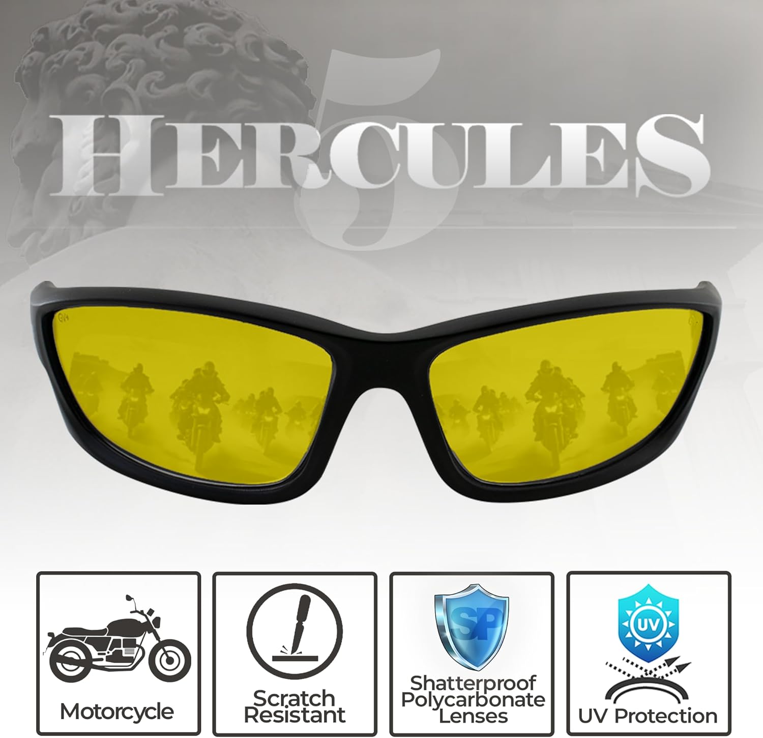 Global Vision Hercules 5 Black Motorcycle & Safety Glasses ANSI Z87.1 Scratch-Resistant Yellow LensGlobal Vision Hercules 5 Black Motorcycle & Safety Glasses ANSI Z87.1 Scratch-Resistant Yellow Lens