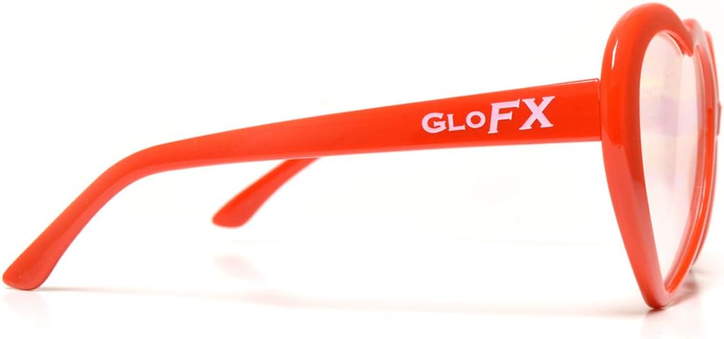 GloFX Diffraction Glasses | Red Heart Glasses | Party EDM Rave Accessory | Visual 3D Prism Geometric Rainbow Effects