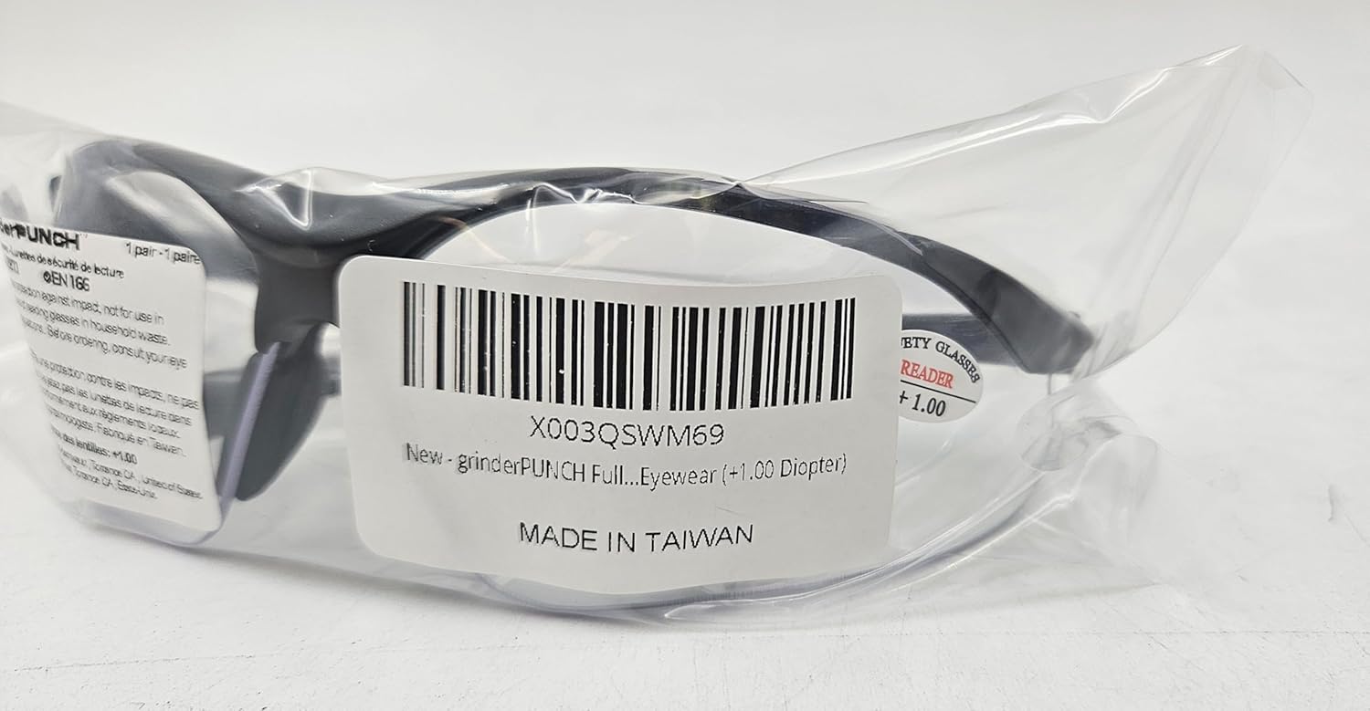 grinderPUNCH Full Lens Magnification Safety Glasses with Black Frame | Clear Lens | | Magnifying Reading Eyewear