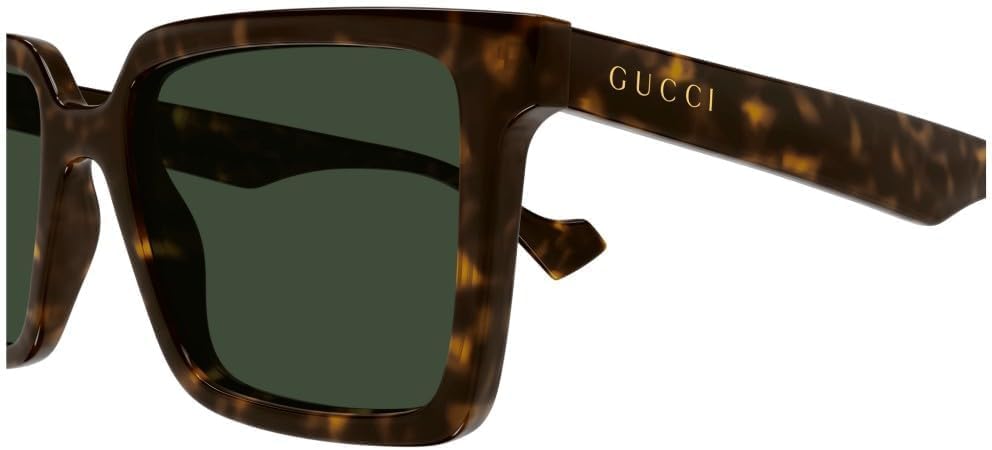 Pared-back simplicity characterizes the important shapes, strains and colors of this idea, for a cool and on-trend temper. Impressed by a gender fluid look, translated in a road fashion easy look. Rectangular gentle acetate form. Gucci lettering brand lasered on the temple adorns the sunshine acetate building. Masculine pop colour palette with industrial but trend shades paired with strong but Guccissima lenses.