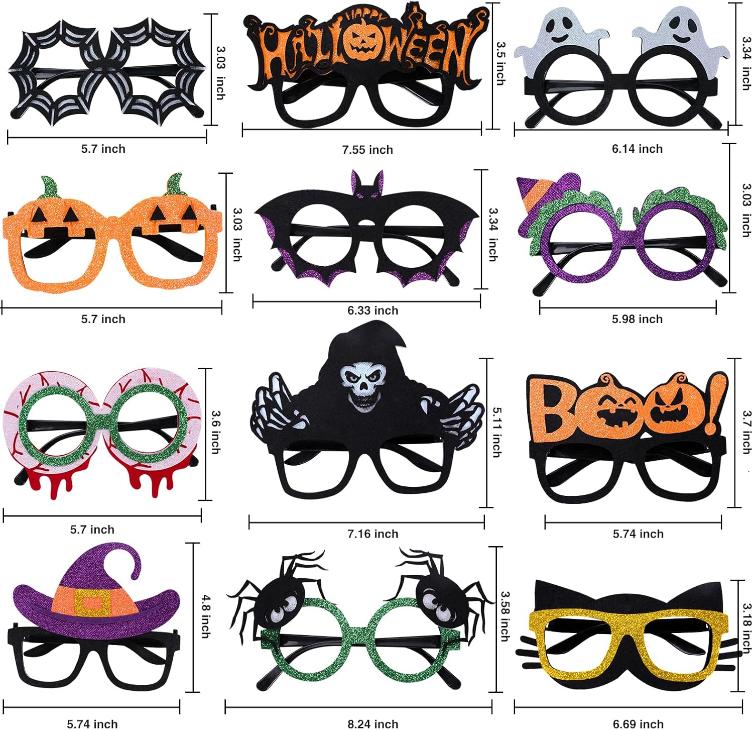 Halloween Eyeglasses 12 Pcs Novelty Toy Glasses Cosplay Halloween Party Favor Funny Glitter Funny Party Decorations for Kids and Adults Glasses Pumpkin Spider Web Ghost Bat Hat Skull Eyeball Eyewear