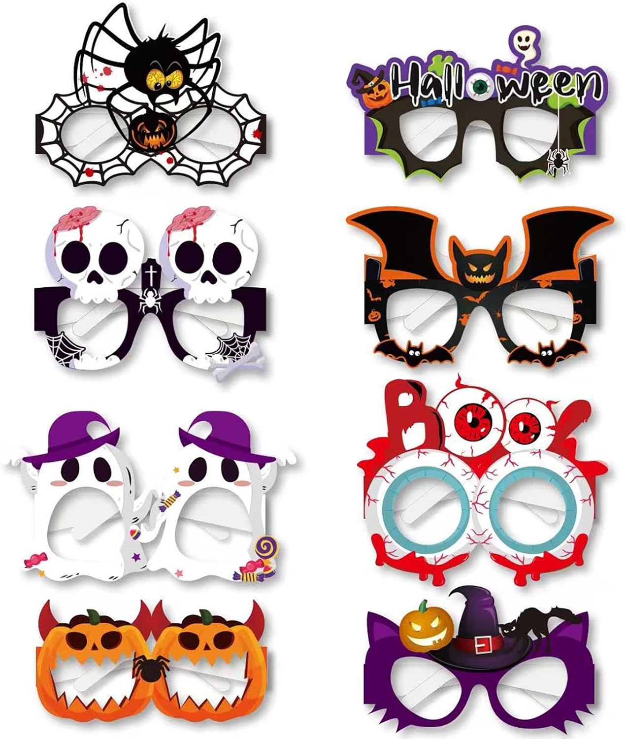 Halloween Glasses Set of 8 Pairs – Halloween Party Supplies Bat Favors,Pumpkin, Ghost, Eyeball, Skeleton Themes, Party Decorations, Gifts, Photo Props, Costume Accessories