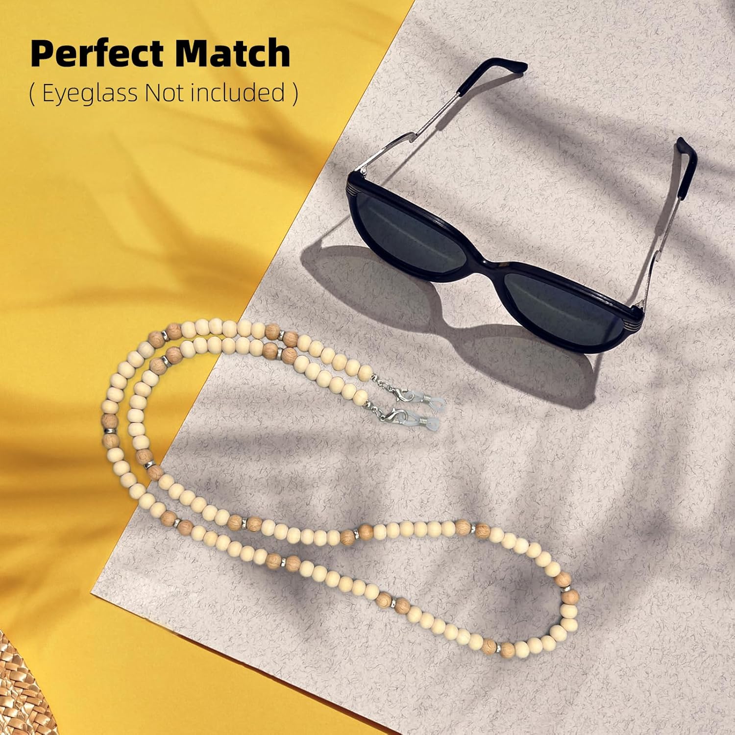 HXOUSE Wooden Beaded Eye Glasses Holders around Neck – Eyeglass Chains for Women – Sunglasses Strap Glasses Holder Stylish Reading Glasses Chain
