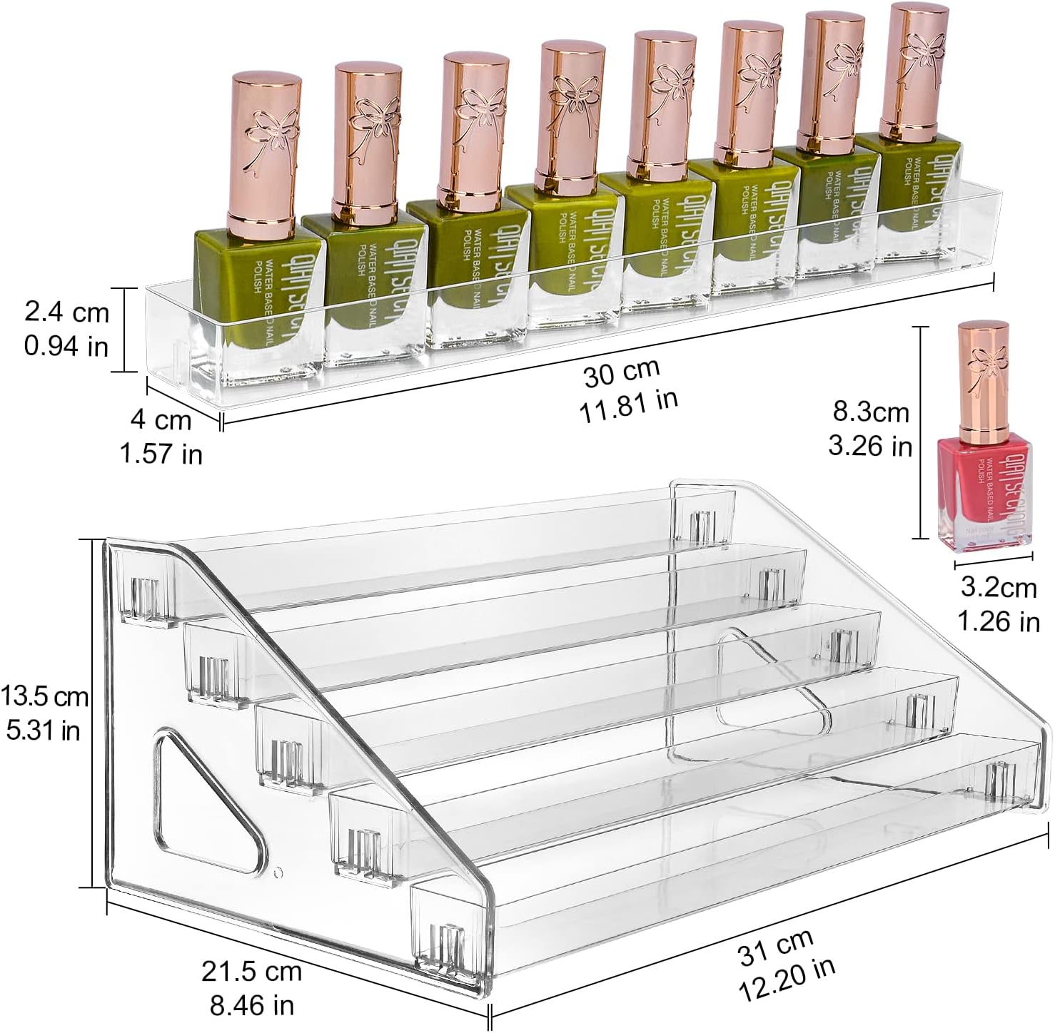 Stepped Design: trapezoidal nail polish organizer with 5 tiers retains your nail polish and important oil organized and inside straightforward attain; good alternative for including cupboard space on toilet countertop, self-importance and so forth