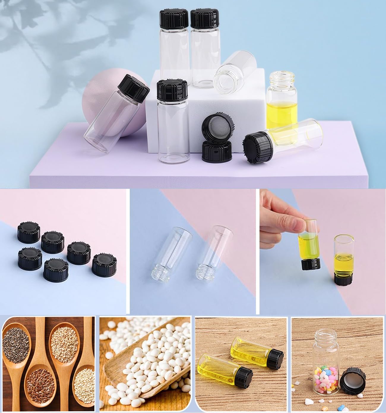 Clear Bottle:Clear tube-shaped vials ultimate for important oils, spices, specimens. Excellent for lab sampling, DIY & private storage.It’s handy to take and carry