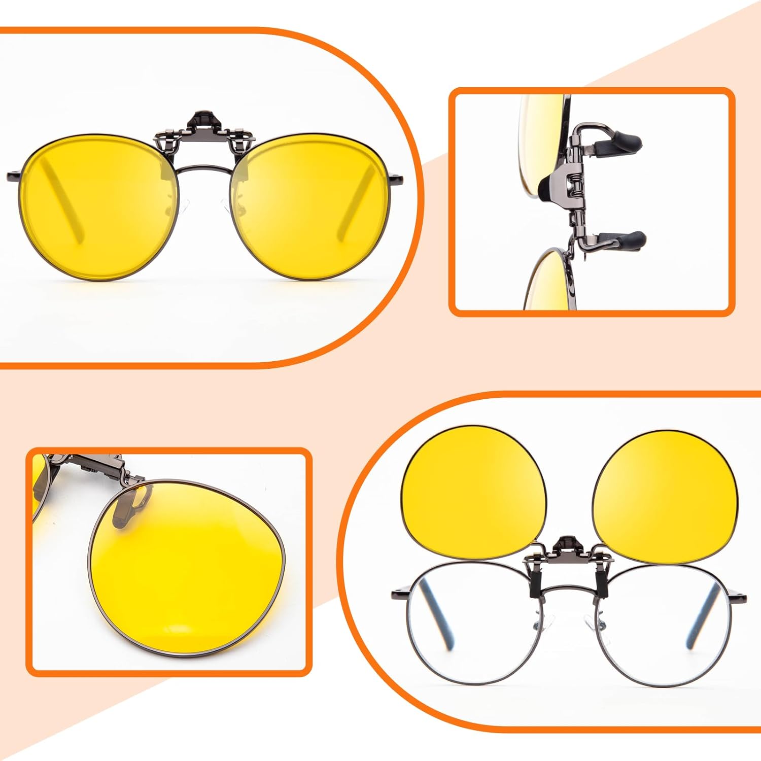 JO Polarized Clip-On Sunglasses UV400 Anti-Glare Lenses with Metal Frame Round