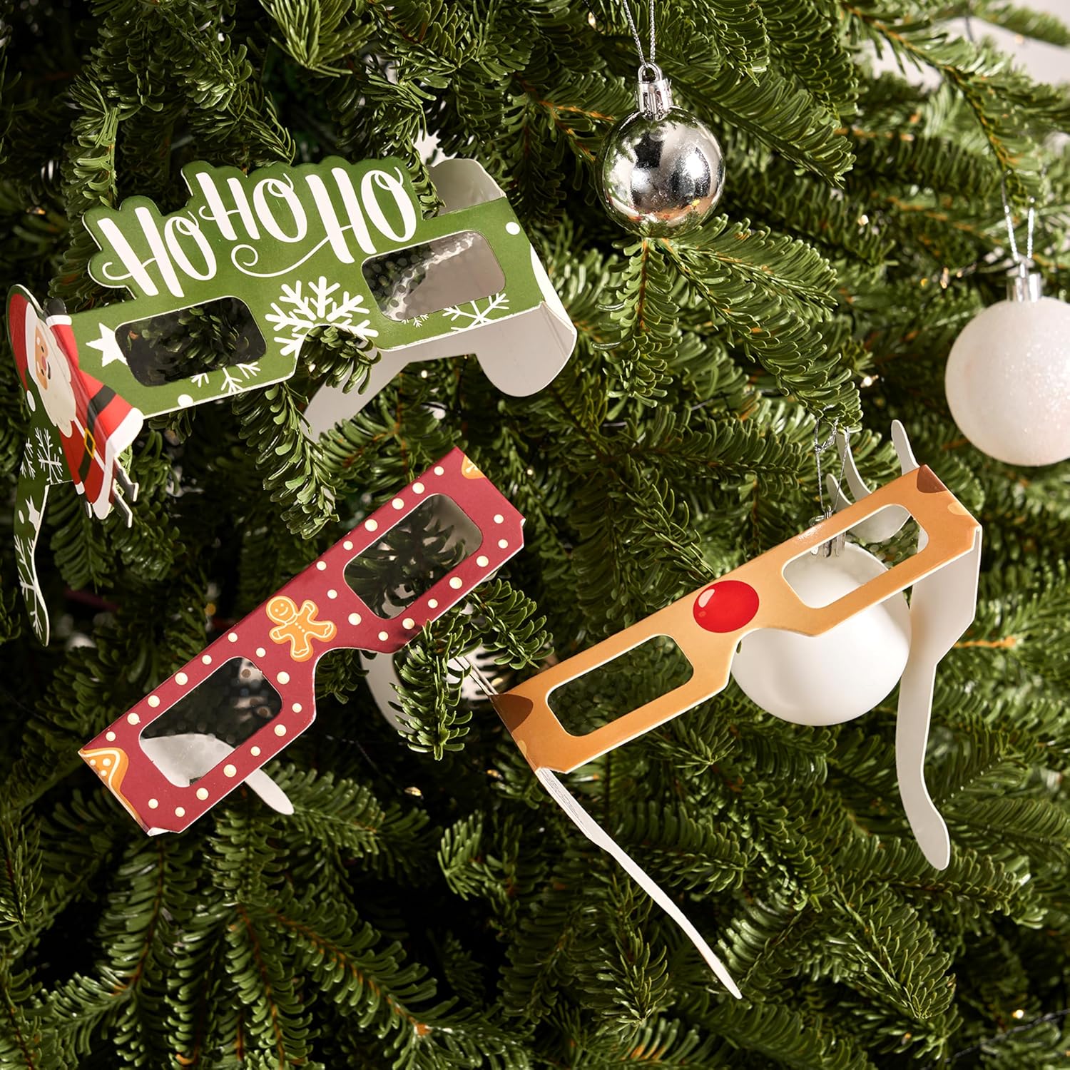 JOYIN 12 Pcs Christmas 3D Diffraction Paper Glasses, Xmas Eyeglasses with 12 Frame Designs & 6 Glass Patterns, 3D Glasses with Diffraction Effect for Light, Adult Kid Xmas Accessory Party Favor Props