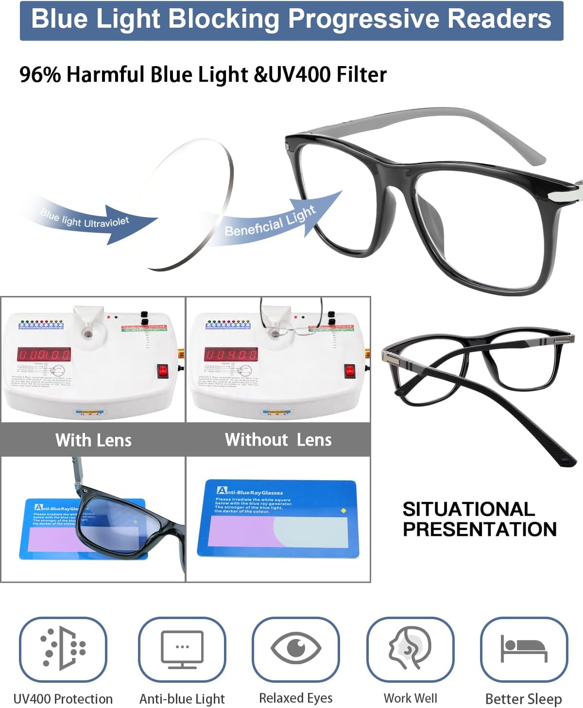 Designed for all-day consolation. The versatile spring hinges forestall stress, and the light-weight TR90 anti-slip temples guarantee a safe, customized match that will not slide.
