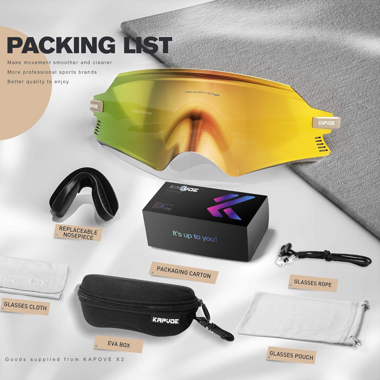 Materials: Lens materials: Polycarbonate Body materials: TR90 UV resistance degree: 99.99% UV400 The package deal contains: 1*Biking Glasses 1*KAPVOE Field 1*EVA Case 1*Glasses Luggage 1*Glasses Fabric 1*Glasses Rope 2*Nostril Pads Options: 100% UV400 PROTECTION Polycarbonate lens can block dangerous UVA & UVB rays, secure, sturdy, and impact-resistant, defend your eyes from sand, heavy wind, and robust daylight. SPECIAL CRAFTSMANSHIP The indirect reducing course of with an built-in curved design, cut back air resistance for high-speed using and supply eyes with a cushty feeling. ORIGINALITY LENSES SHAPE The form thought comes from the fin of shark, trendy and good-looking design makes you totally different from the gang. EAGLE BEAK SHAPE The lenses are designed by Italian designer Yan, seem like an an eagle beak, and are mixed with futuristic sci-fi components, supplying you with a unique feeling. VENTILATION DESIGN Distinctive multi air flow gap design on the lens and body to extend airflow, forestall fogging in chilly winter, and preserve a cool feeling in scorching summer time. WIDER VISION The frameless design not solely reduces the burden of the glasses but additionally supplies a bigger sight view.