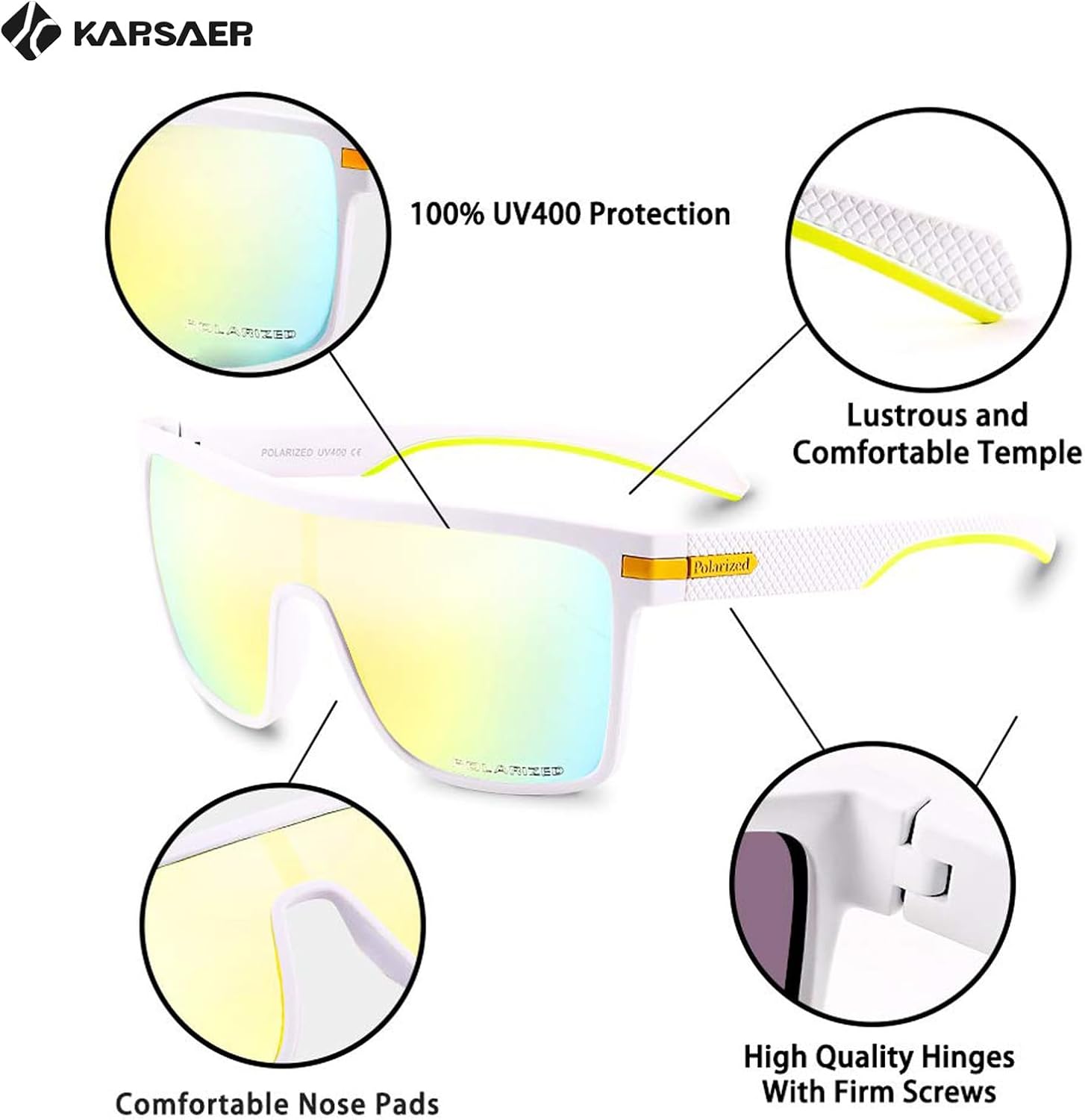 Karsaer Flat Top TR90 Polarized Sports Mens Sunglasses Vintage Square Cycling Running Fishing Golf Hiking Sports Glasses