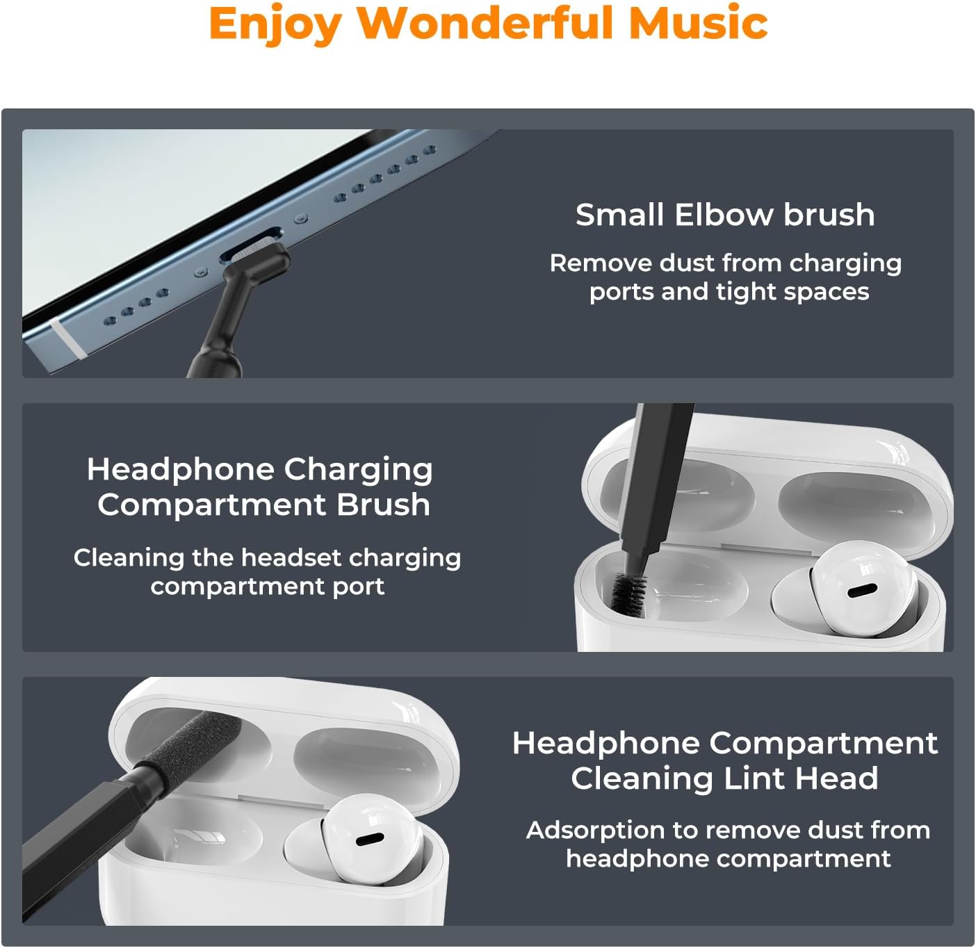 🎶Take pleasure in Fantastic Music:Airpod cleaner package can totally clear your headphone and charging case. Metallic nip cleans that sticky and hard grime hidden between crack and gap; Plush brush cleans the mud sticks on acoustic mesh, shallow holes, and crack; Charging gap cleansing gentle brush and arduous brush cleans the mud and grime hidden in these deep holes, supplying you with a greater music expertise.
