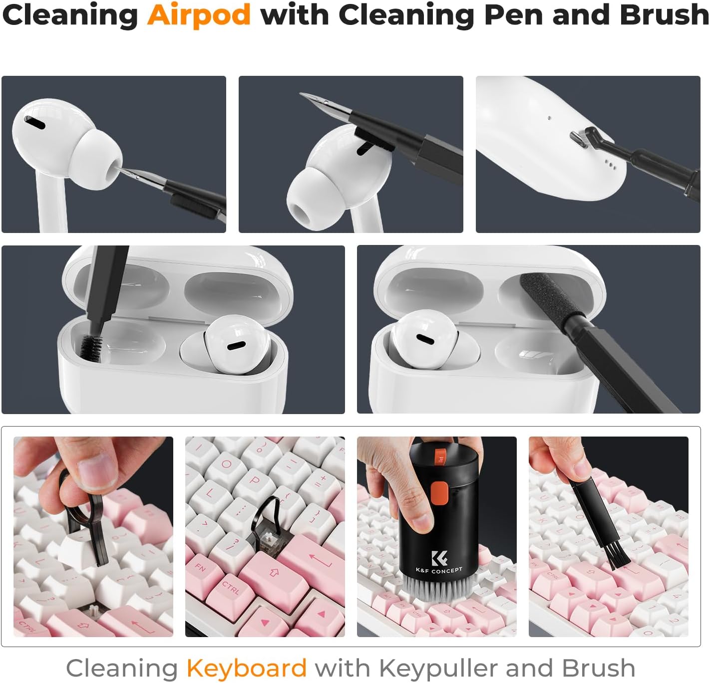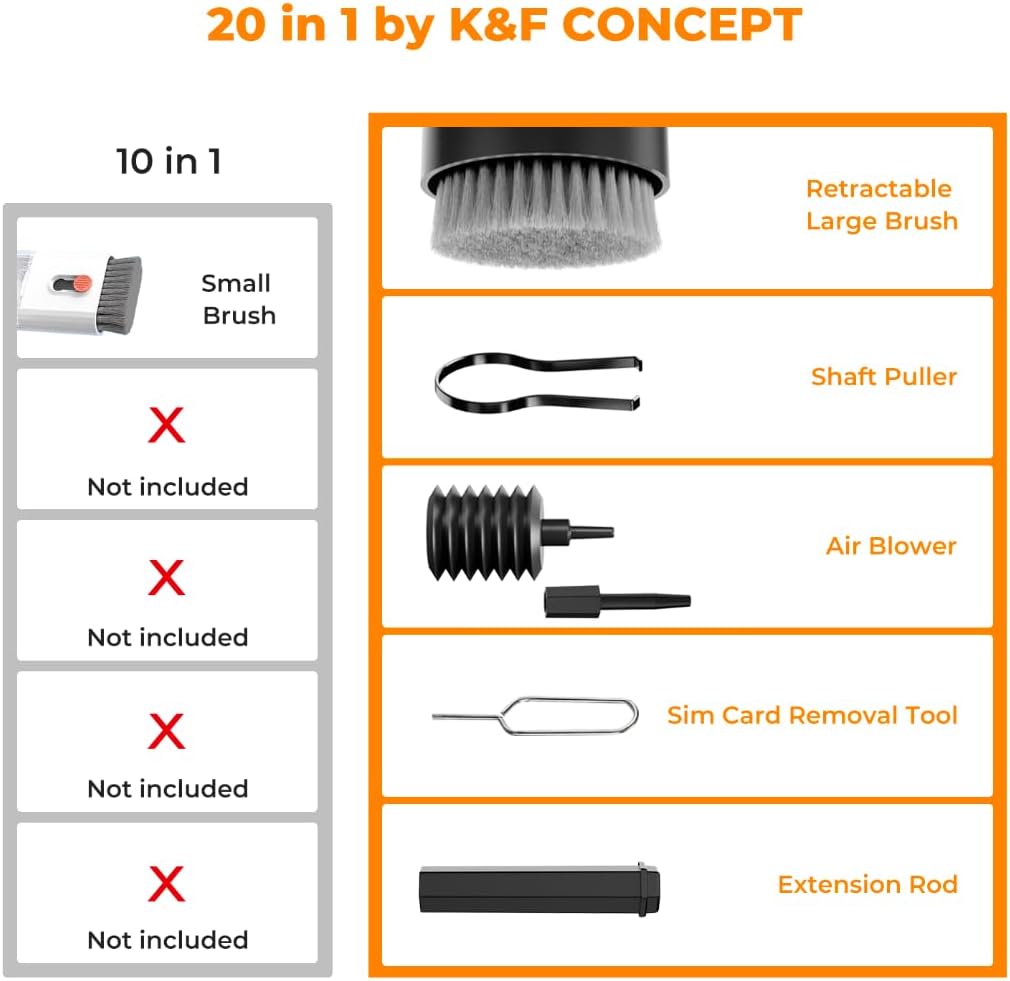 K&F CONCEPT 20-in-1 Keyboard Cleaning Kit Laptop Cleaner, Multifunctional Electronic Device Cleaning Tool, for iPhone AirPods MacBook iPad, Camera PC Monitor Earbud TV Tablet Screens