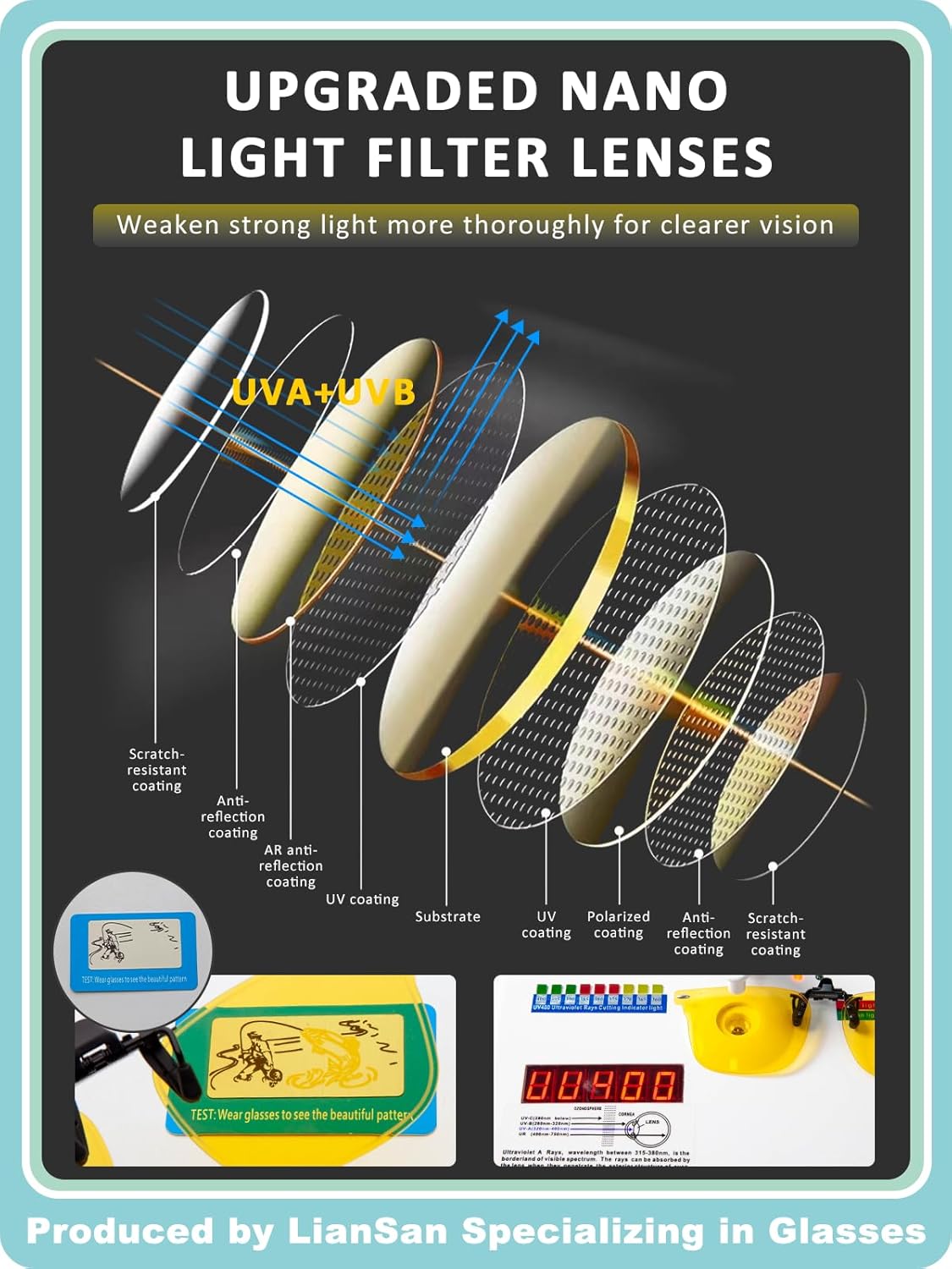 LianSan Polarized Clip On Night Driving Glasses Over Prescription Glasses Women Men, Anti Glare UV400 Protection Lenses