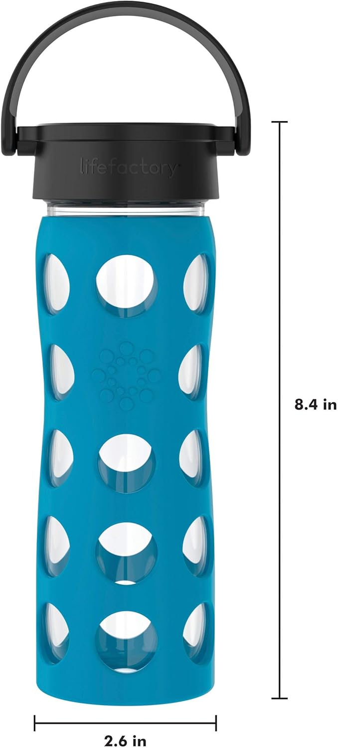 Lifefactory 16-Ounce BPA-Free Glass Water Bottle with Classic Cap and Protective Silicone Sleeve, Teal Lake
