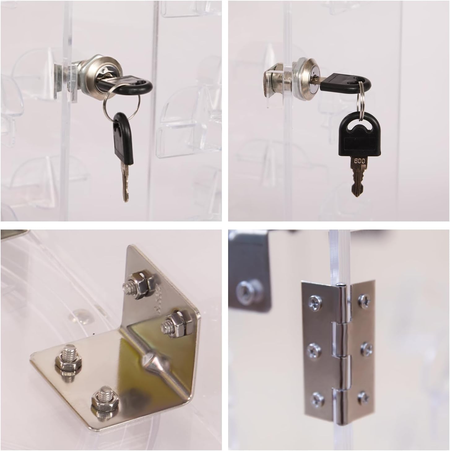 2 SECURITY DOORS LOCKS + ACRYLIC BOARD SUNGLASSES HOLDER: There’s 2 safety Doorways locks on 2 sides, the tremendous lock can hold our sun shades secure for an extended time. Acrylic board materials has good rigidity, is extra sturdy, doesn’t deform, doesn’t change shade, rustproof and has wonderful moisture-proof efficiency, light-weight. Fast meeting required.