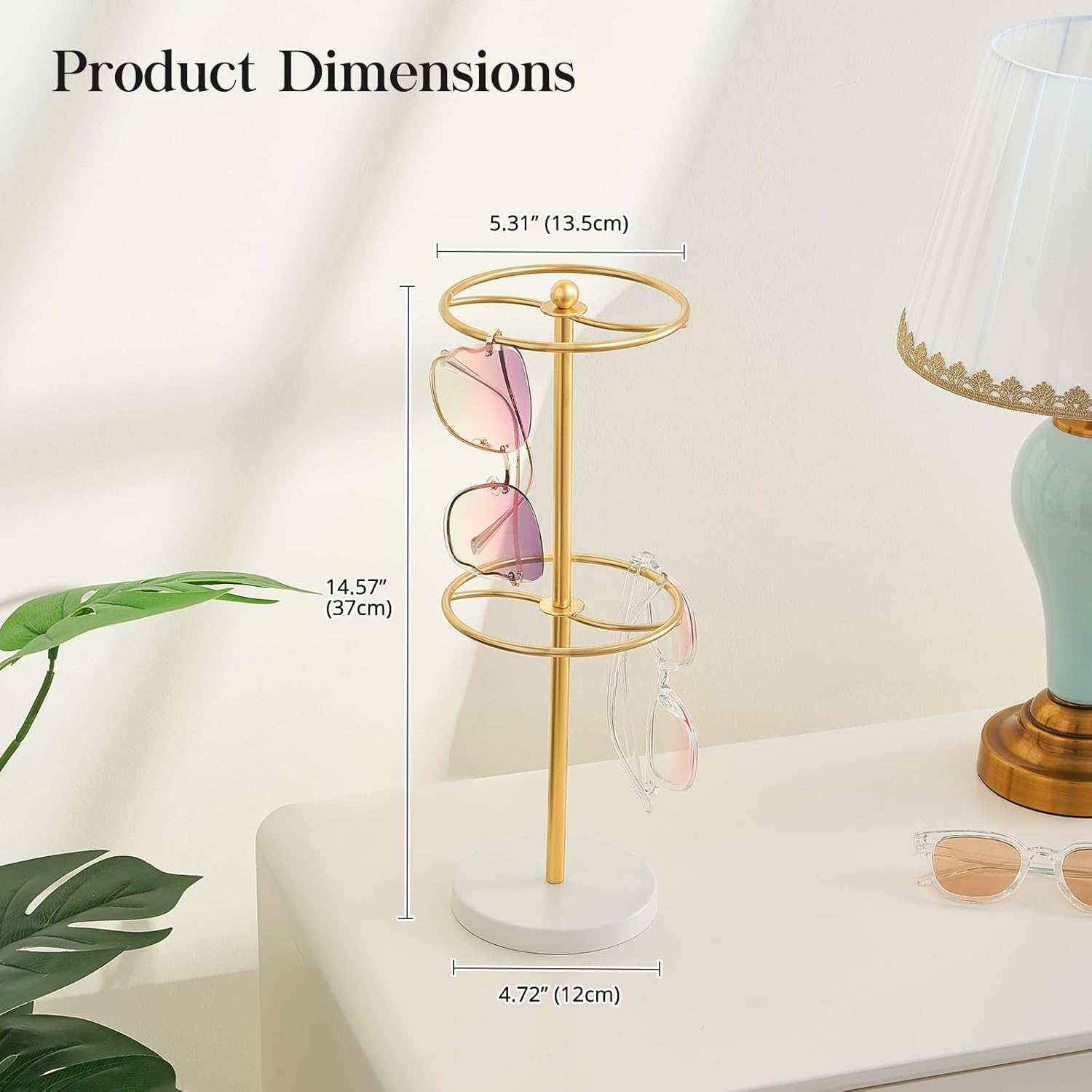 Massive capability double-layer sun shades rack, which may retailer as much as 18 pairs of sun shades on the identical time; Say goodbye to desktop litter!