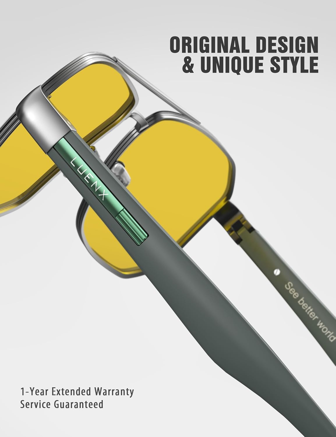 LUENX Aviator Sunglasses for Men Square Polarized Polygon Shades UV400 Sun Glasses with Accessories