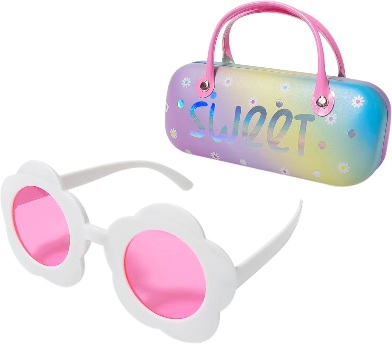 LUV HER Kids Daisy Sunglasses & Case Set – Girls Sunglasses Polarized Lenses – Sweet Floral Design