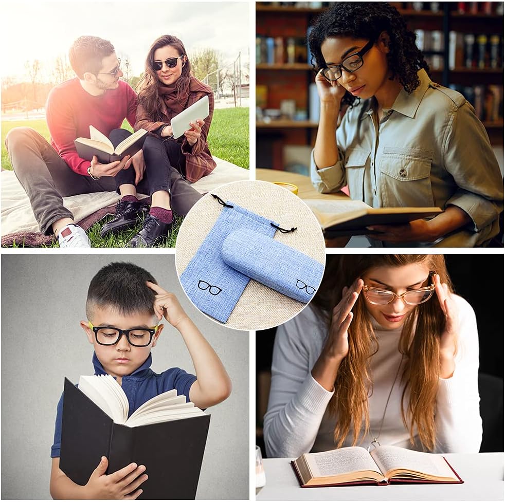 LZYMSZ 4 Sets Glasses Case, Portable Linen Hard Shell Eyeglasses Cases, Protective Glasses Box for Storage Sunglasses, Eye Glass Carry Case with Glasses Accessories (Drawstring Pouch, Cleaning Cloth)