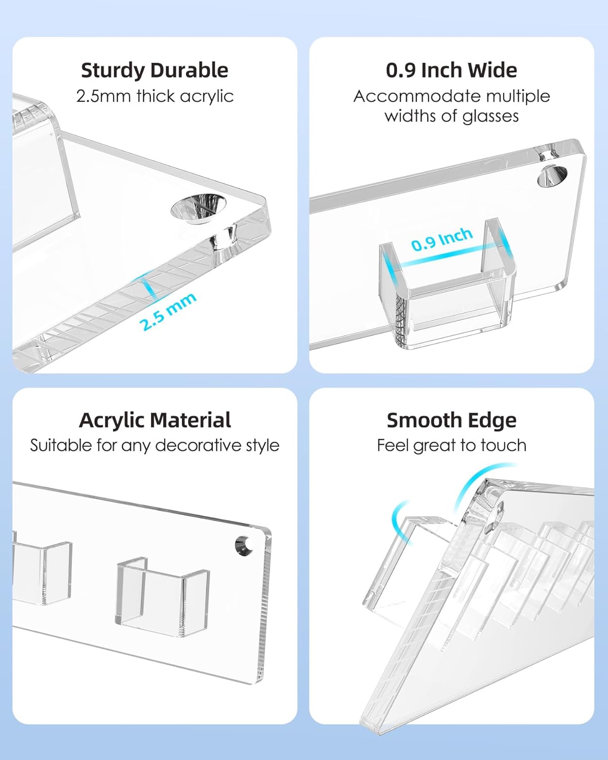 Versatile Set up: Accommodates 2 screws and three sq. clear tapes to put in the sun shades organizer, so you will have 2 choices to mount eyeglass holder. You would use clear tape to stick the acrylic sun shades holder to the wall. The opposite means is to make use of screws, that are extra steady, to hold it up.