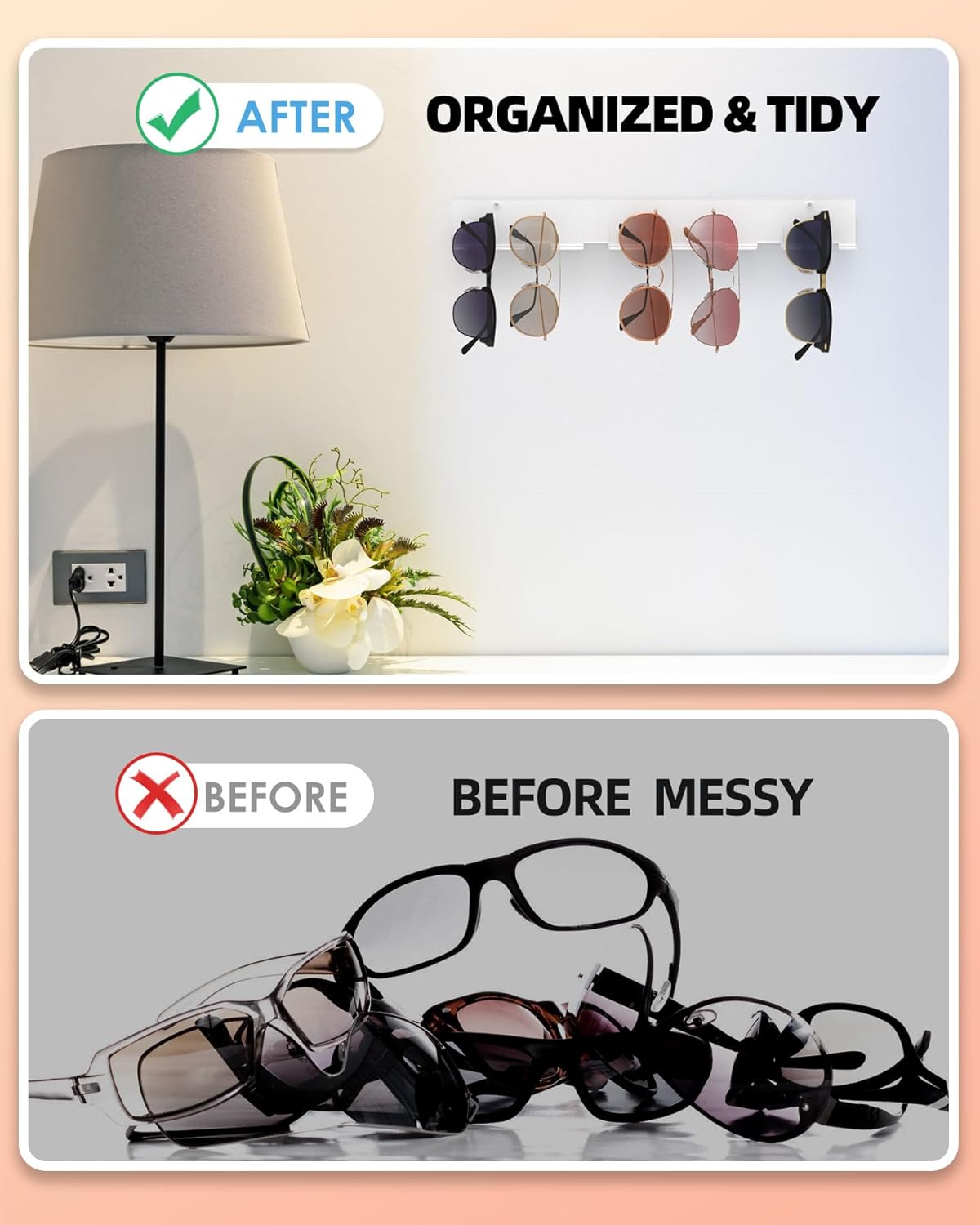 PREMIUM MATERIAL: Crafted from high-quality acrylic, this sun shades storage organizer gives lasting sturdiness and clear visibility to elegantly showcase your eyewear