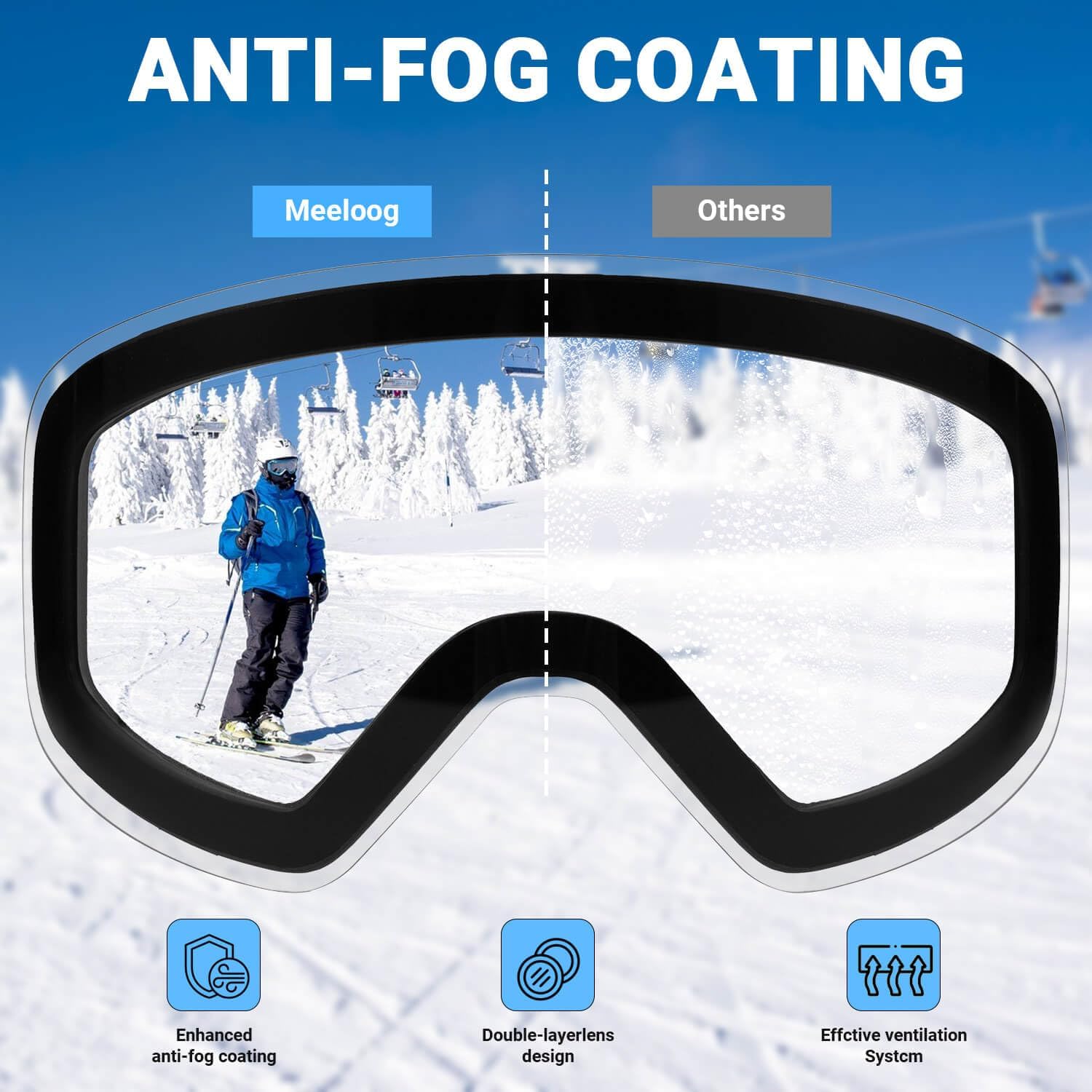 Meeloog Magnetic Ski Goggles Frameless Interchangeable Lens, UV Protection Snow Goggles, Snowboard Gear for Men Women Youth