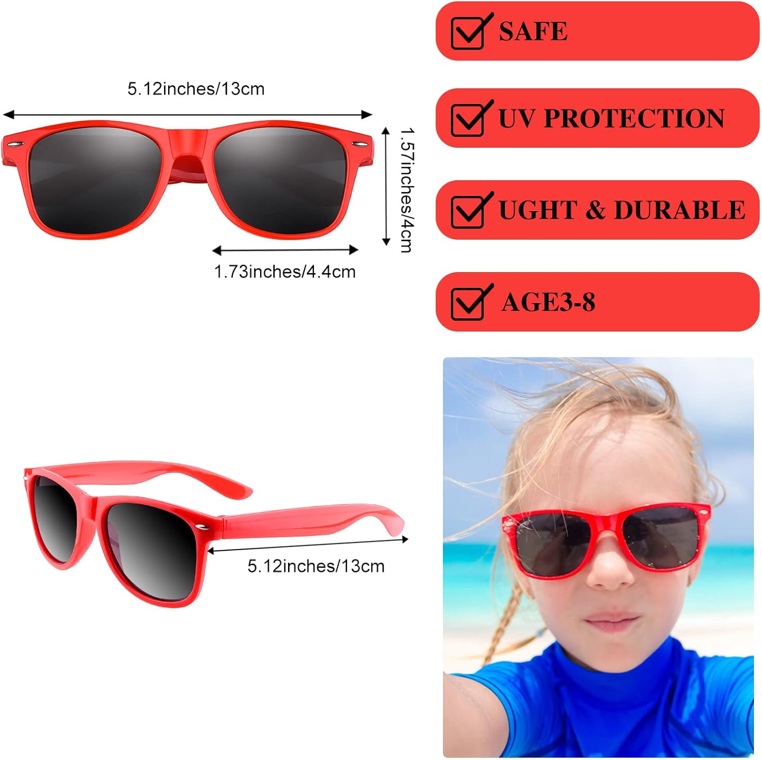MIAHART 12 Pack Kids Party Sunglasses Bulk Summer Party Favors Retro Glasses for Boys and Girls Birthday Party Supplies, Red