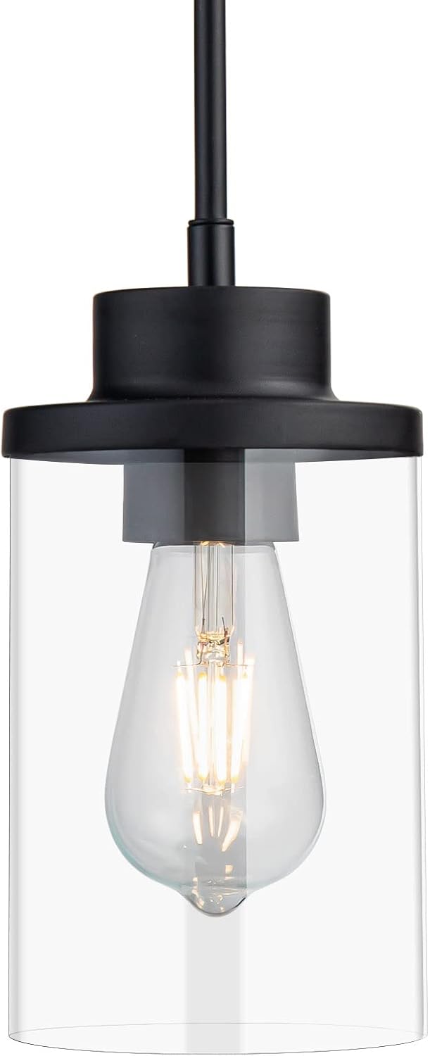 Modern Black Farmhouse Clear Glass Cylinder Pendant Light Fixture,Ceiling Hanging Metal Industrial Mini Pendant Lighting for Kitchen Island Dining Table Bedroom Hallway Foyer…