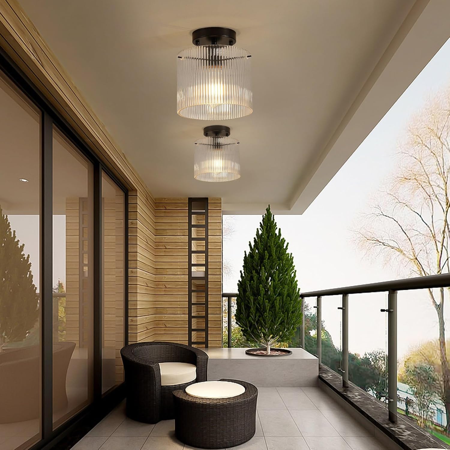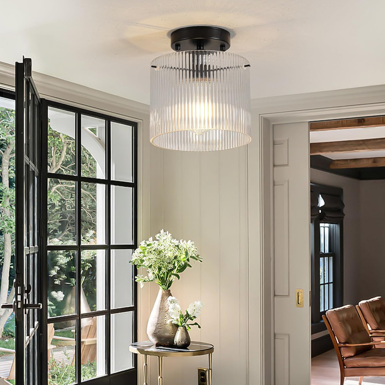 Black Semi-Flush Mount Ceiling Gentle: Improve your house with this semi-flush ceiling gentle, that includes a high-quality clear striped glass shade and a black load-bearing ceiling. The design superbly refracts each pure and bulb gentle, creating a shocking brilliance