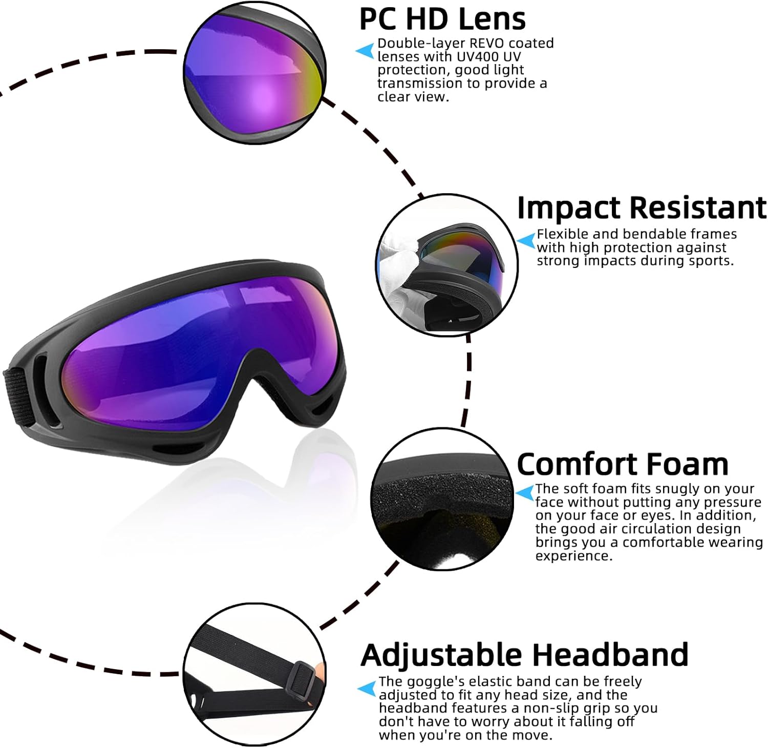 Motorcycle Goggles 5 Pairs Dirt Bike Goggles UV Protection Ski Goggles Riding Dust And Windproof ATV Goggles With 3 Skull Face Mask For Men Women Yourh Adults