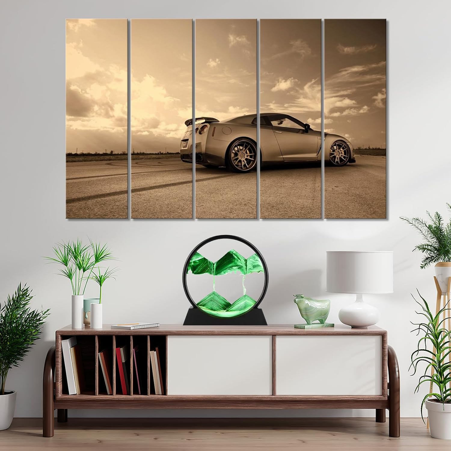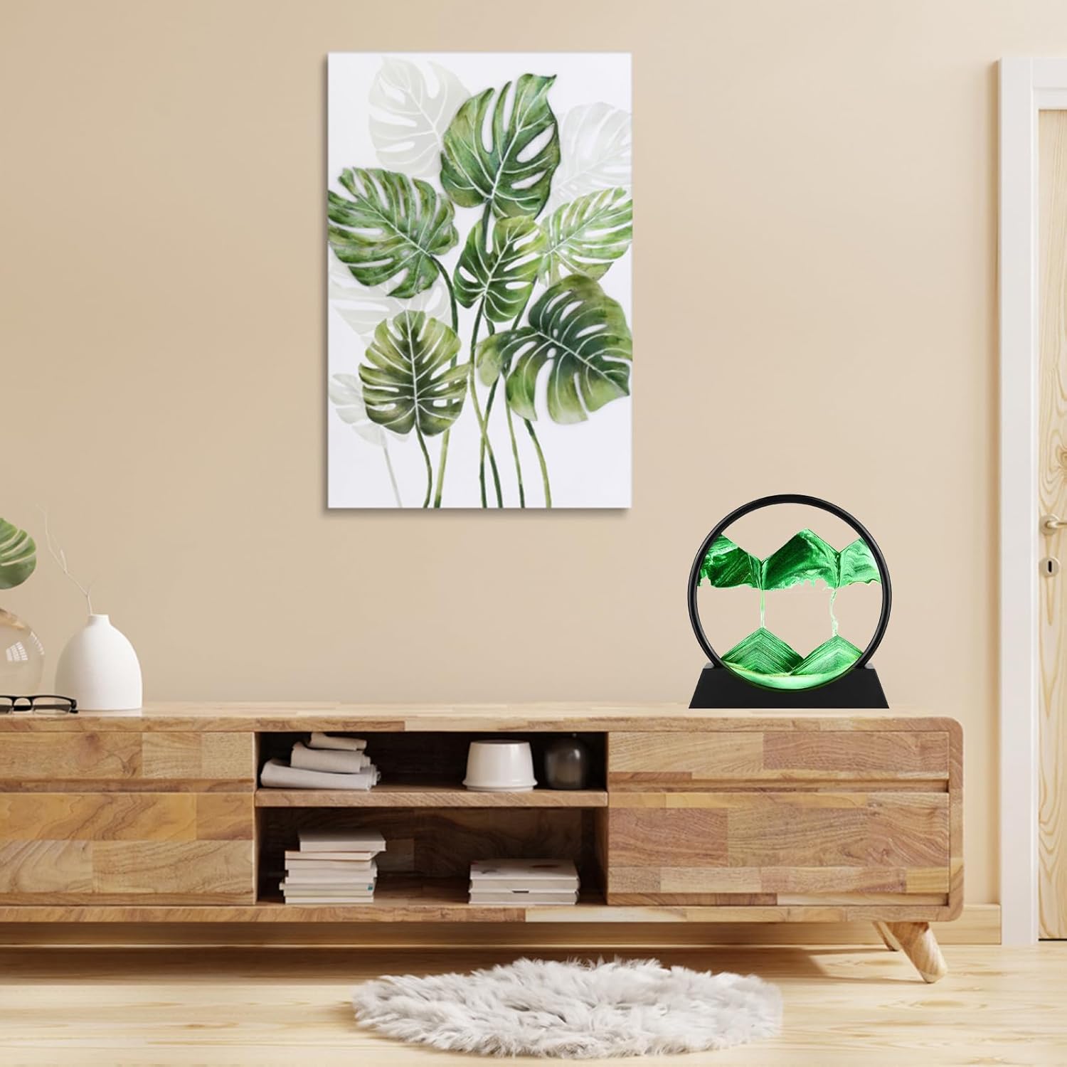 Moving Sand Art Picture – Round Glass 3D Deep Sea Sandscape – 3D Quicksand Painting Decor – Relaxing Home Decoration Desk Toys for Office, Home, Desk, Mantle, Bookshelf – (Green, 7 in)