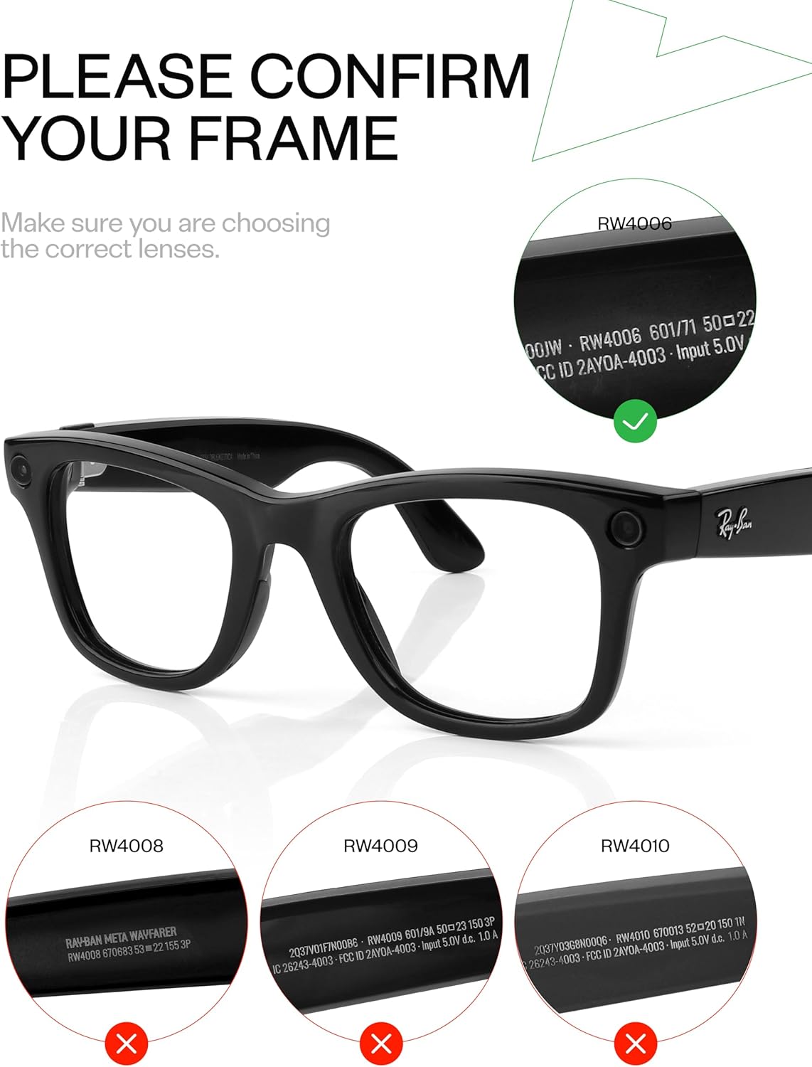 Mryok Replacement Lenses Compatible with Ray-Ban Meta Wayfarer RW4006 50mm Smart Glasses – Options
