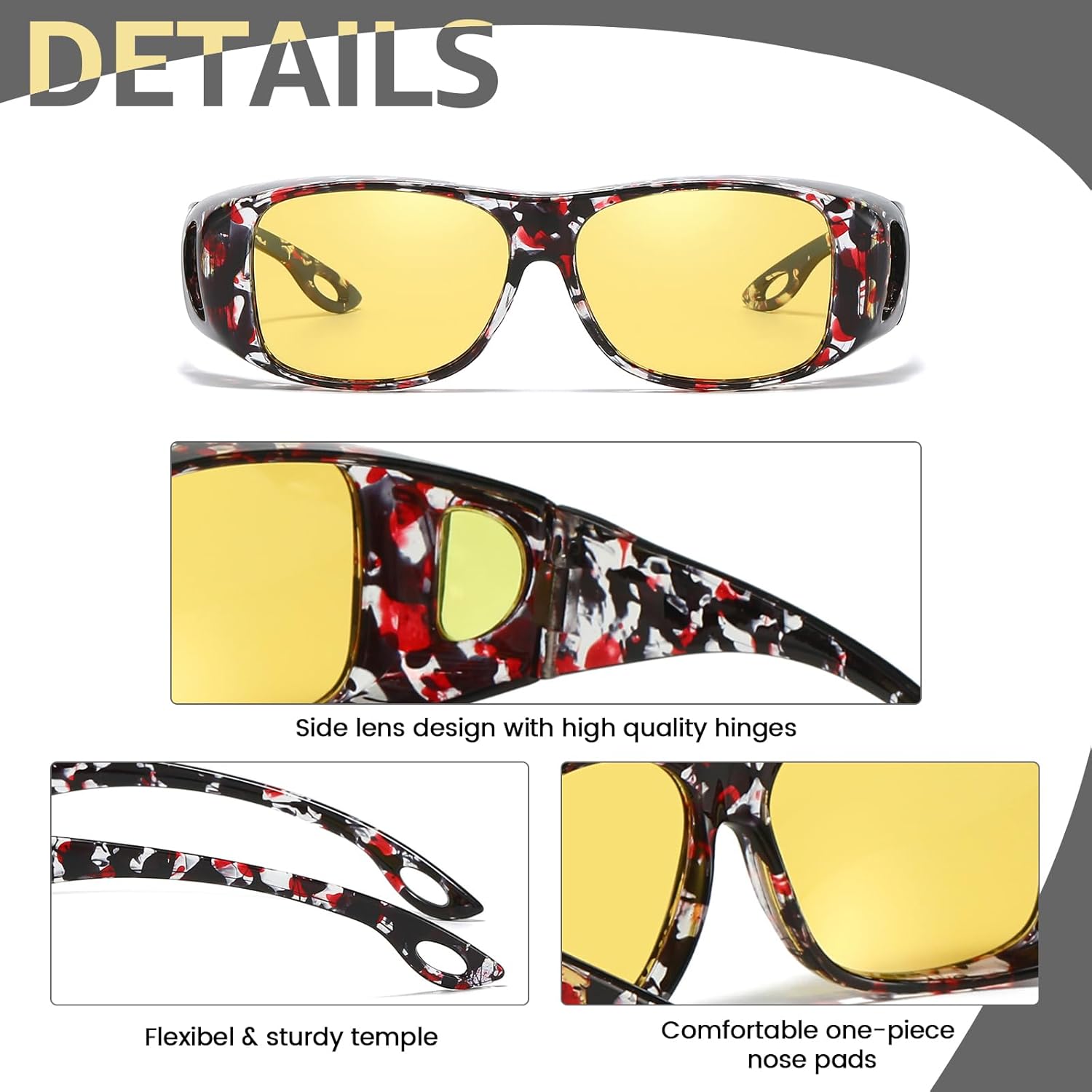 Myiaur 2 Pack Polarized Night Vision Glasses for Women, Fit Over Wrap Around Driving Glasses, Anti Glare and UV400 Protection