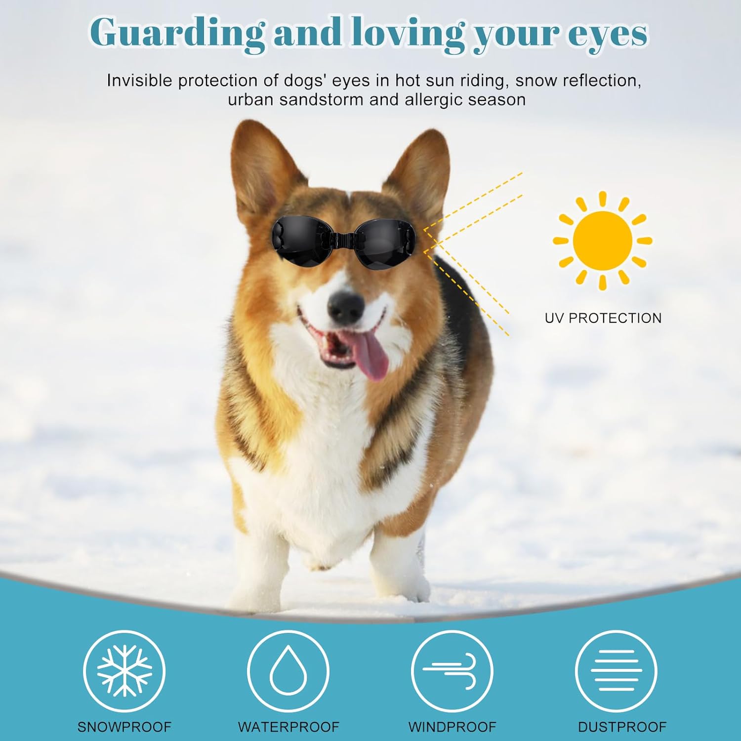 NVTED Foldable Dog Goggles, Dog Sunglasses UV Protection Wind Protection Dust Protection Fog Protection Pet Glasses Eye Wear Protection with Adjustable Strap