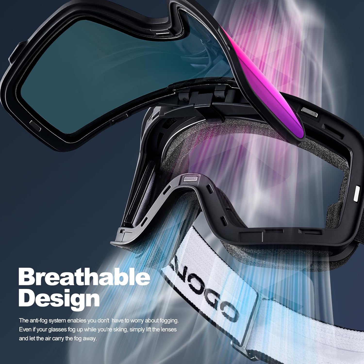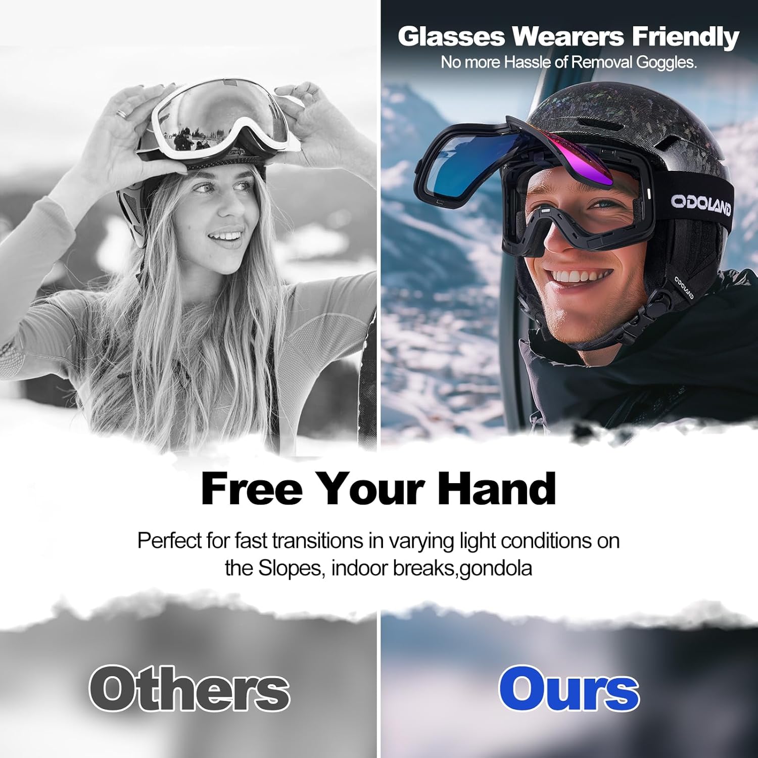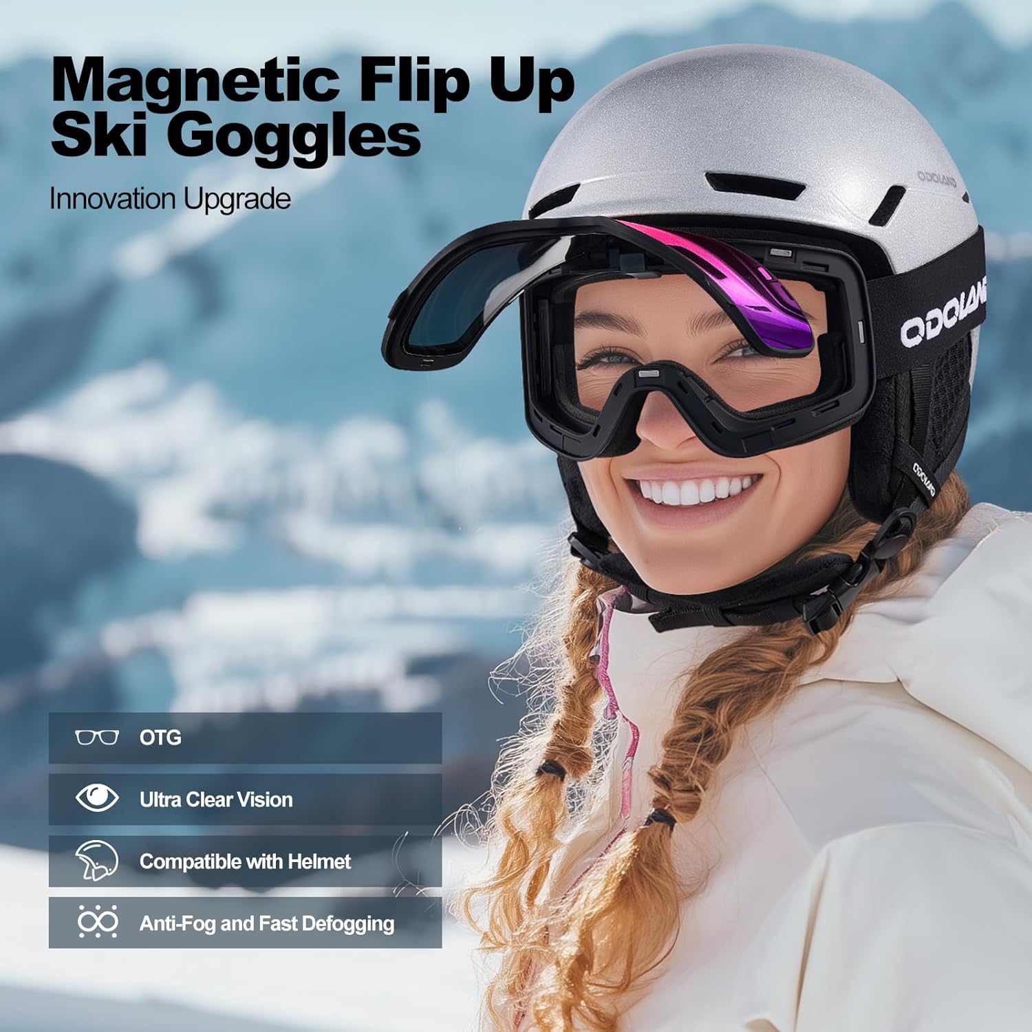 Odoland Flip Up Ski Goggles, OTG Anti-Fog Snow Goggles with UV400 Protection, Snowboard Goggles for Men Women Adult Youth