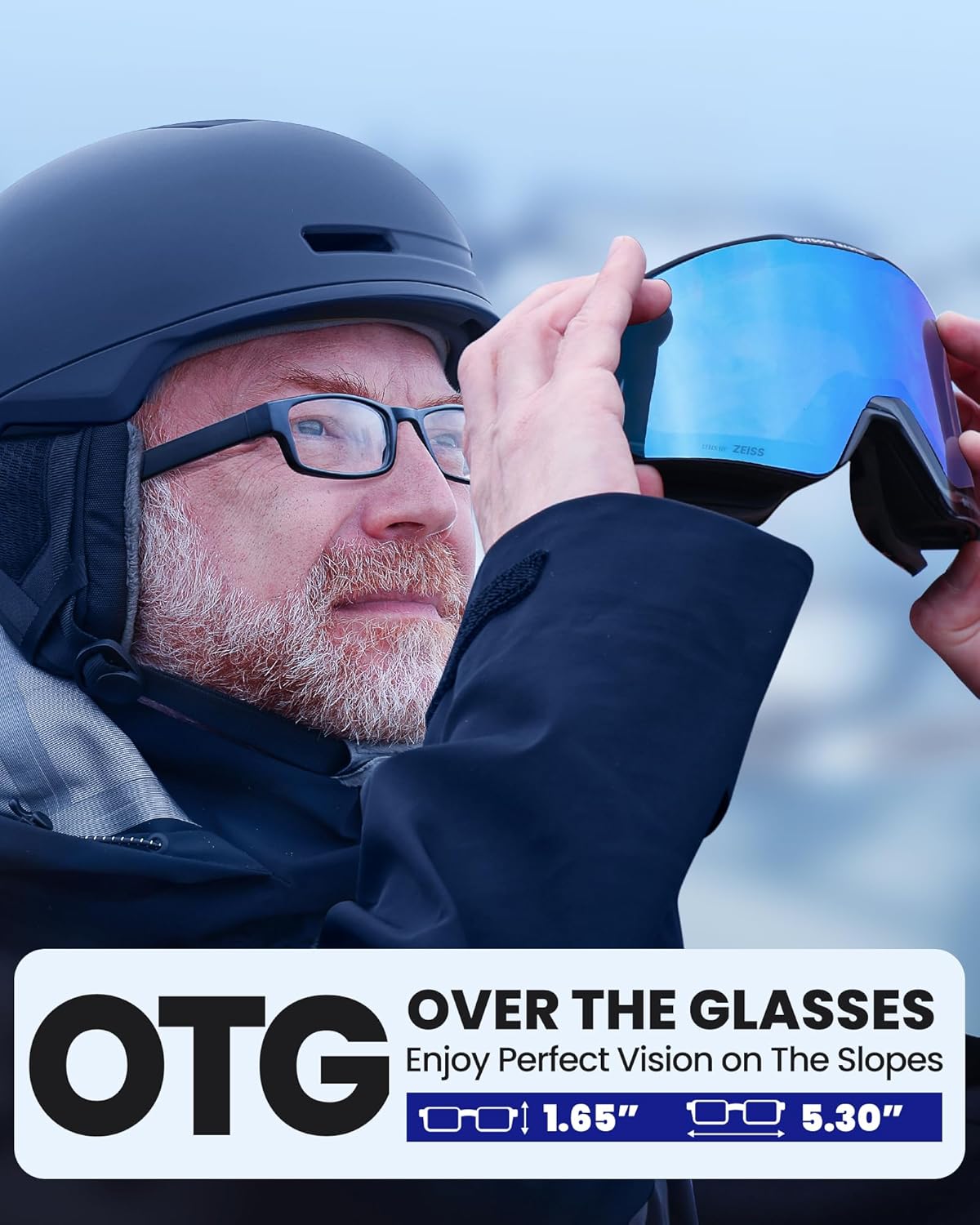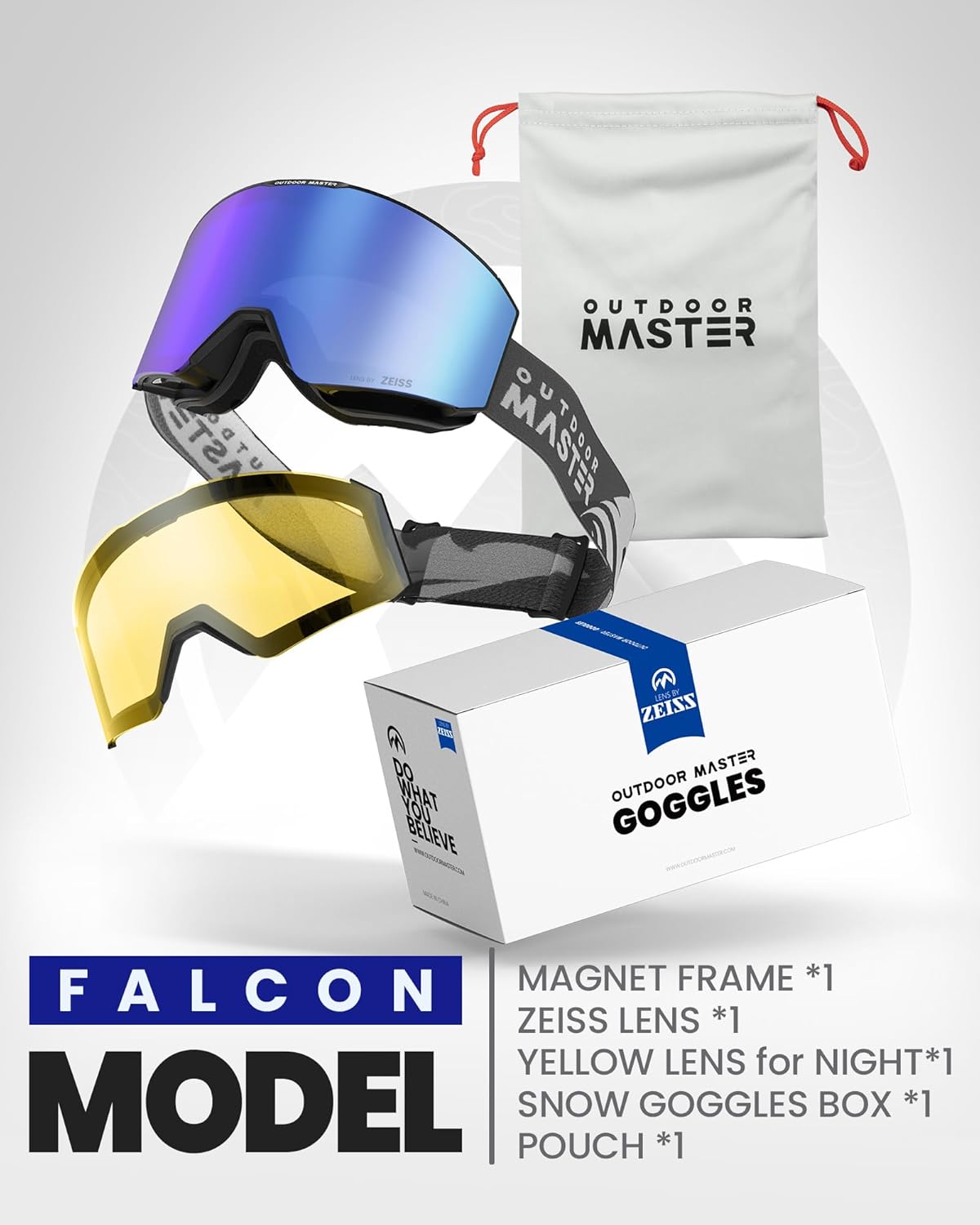 OutdoorMaster Falcon Ski Goggles Lens by ZEISS, OTG Snowboard Goggles Anti-fog, Magnetic Interchangeable Lens, Snow Goggles