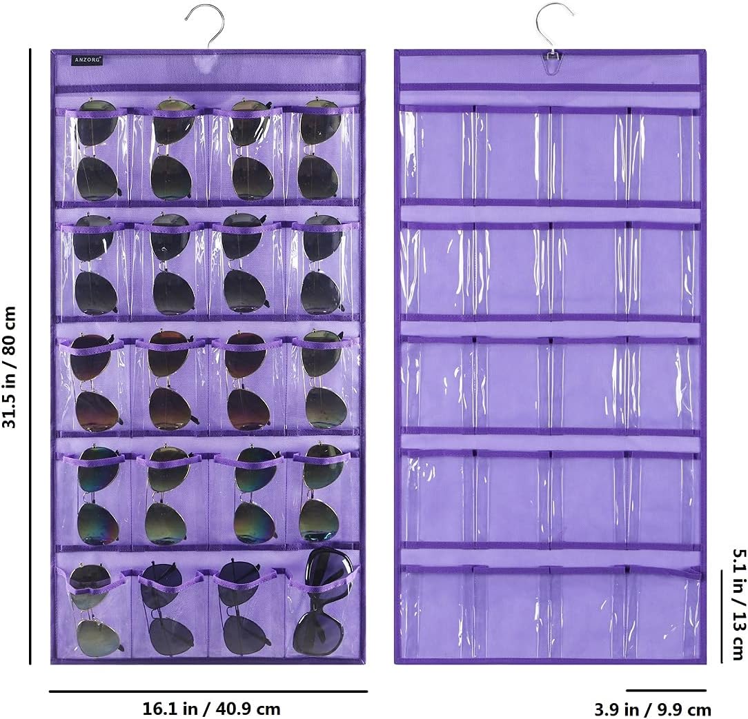 Over the Door Hanging Sunglasses Organizer Storage Sunglass Rack Holder Eyewear Display Case with 16 Clear Pockets