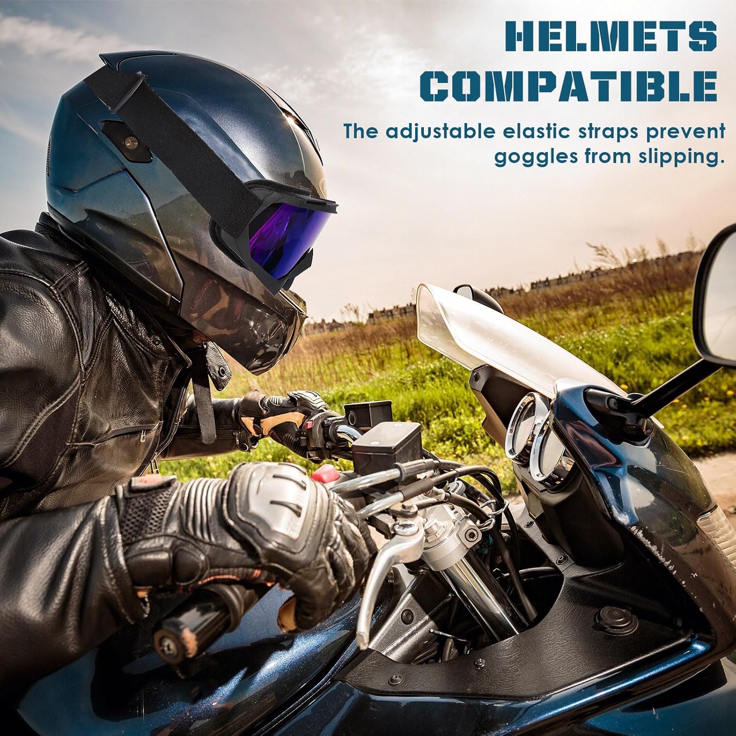 Customers find these motorcycle goggles excellent in quality and value for money. They fit well over helmets, and one customer mentions they effectively keep dust out of their face during dusty rides.