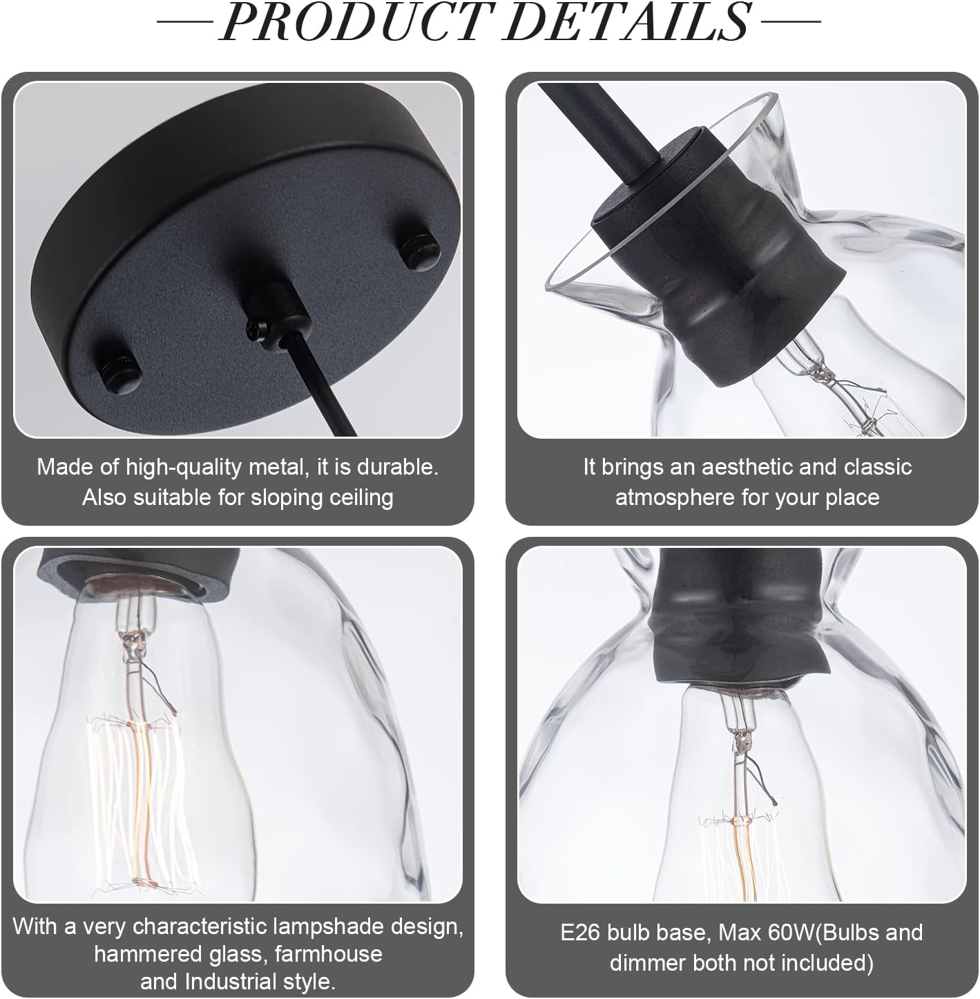 BULB REQUIREMENTS: This farmhouse hanging mild is suitable with incandescent, LED, CFL, and halogen bulbs with E26 sockets (commonplace USA sockets and 60W Max). Absolutely dimmable when used with a dimmable bulb and suitable dimmer swap. (Bulb not included)