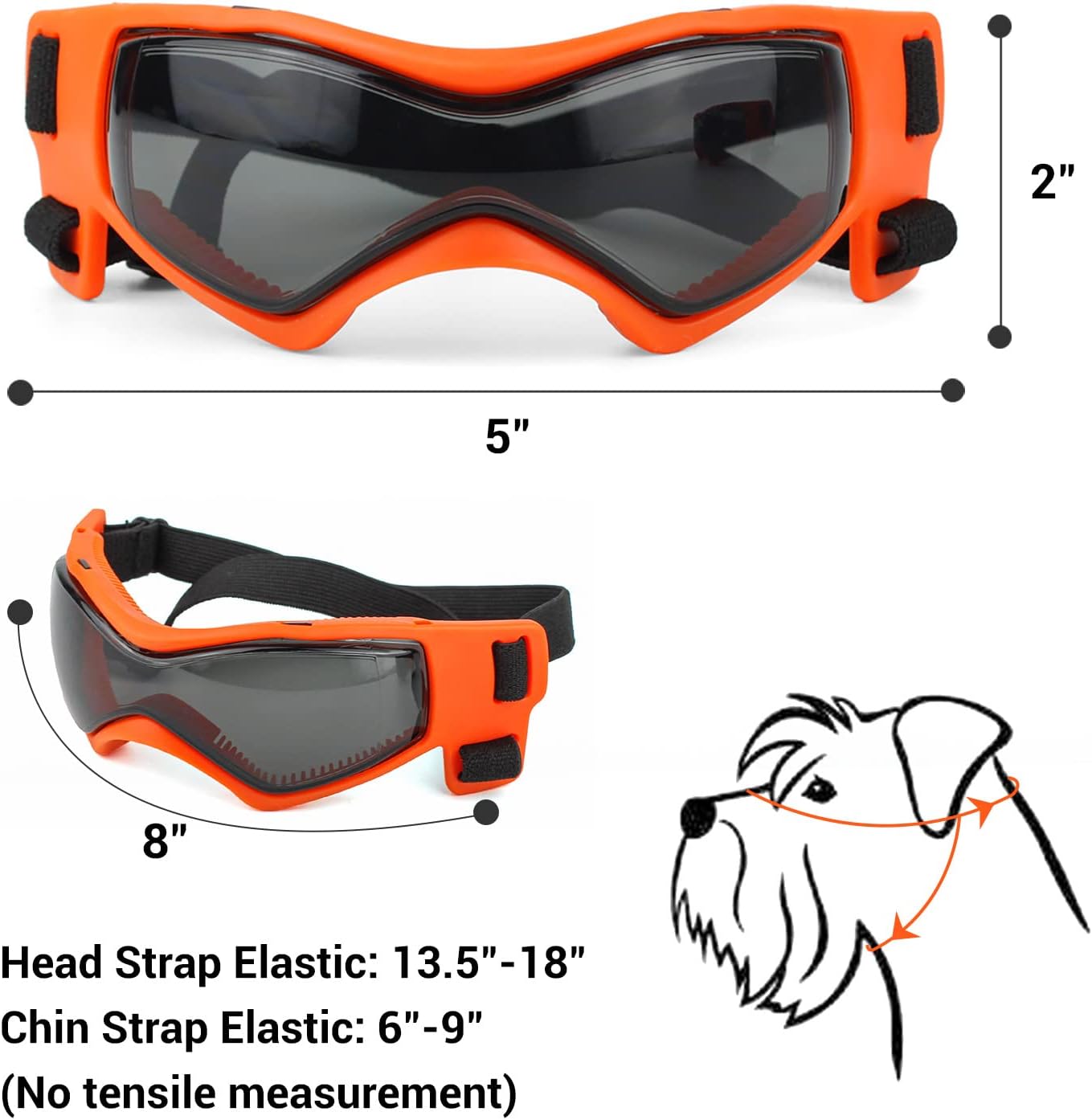 PETLESO Dog Goggles Medium Breed, Dog Sunglasses Small Breed Eye Sun Light Protection, UV Protection Goggles for Pet with Adjustable Straps, Medium Orange