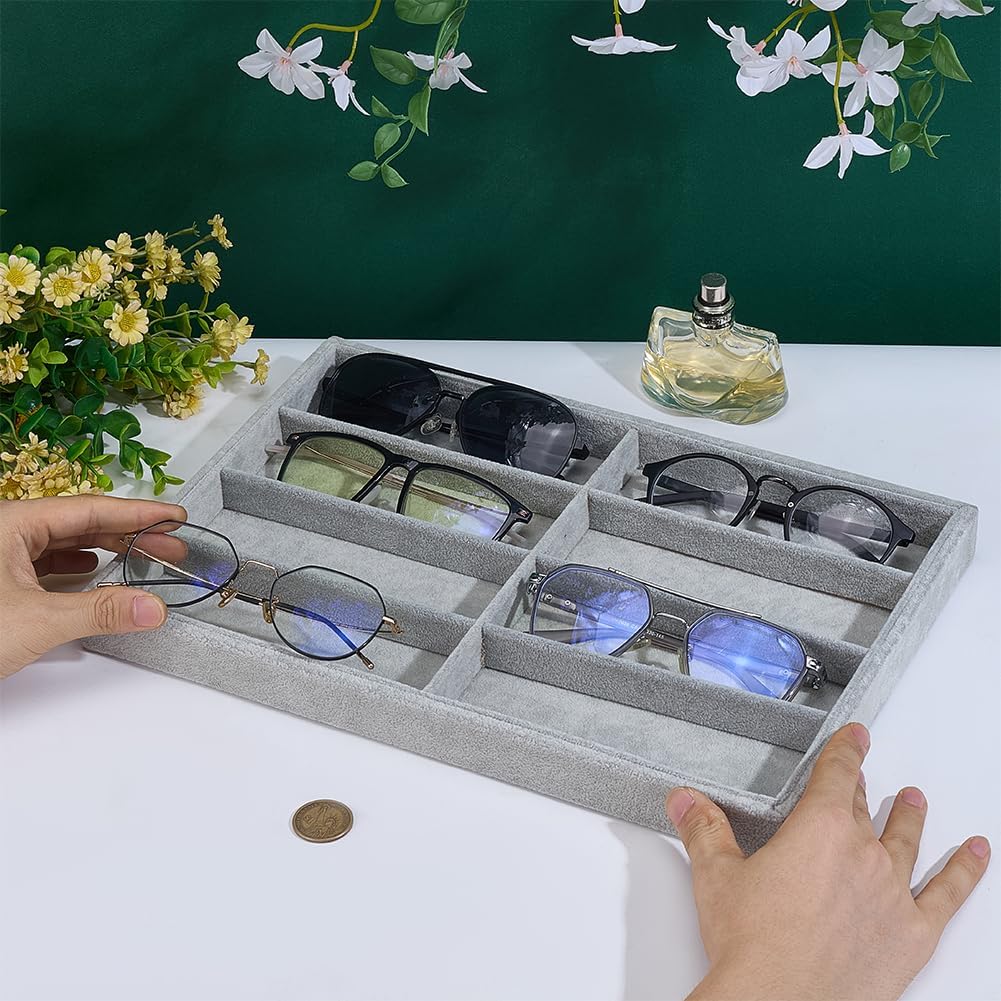 PH PandaHall Sunglass Organizer 8 Grids Velvet Glasses Trays Eyeglasses Display Case Stackable Eyewear Storage Glass Organizer Drawer Eyeglass Holder for Men Women Jewelry Watch Display Collection