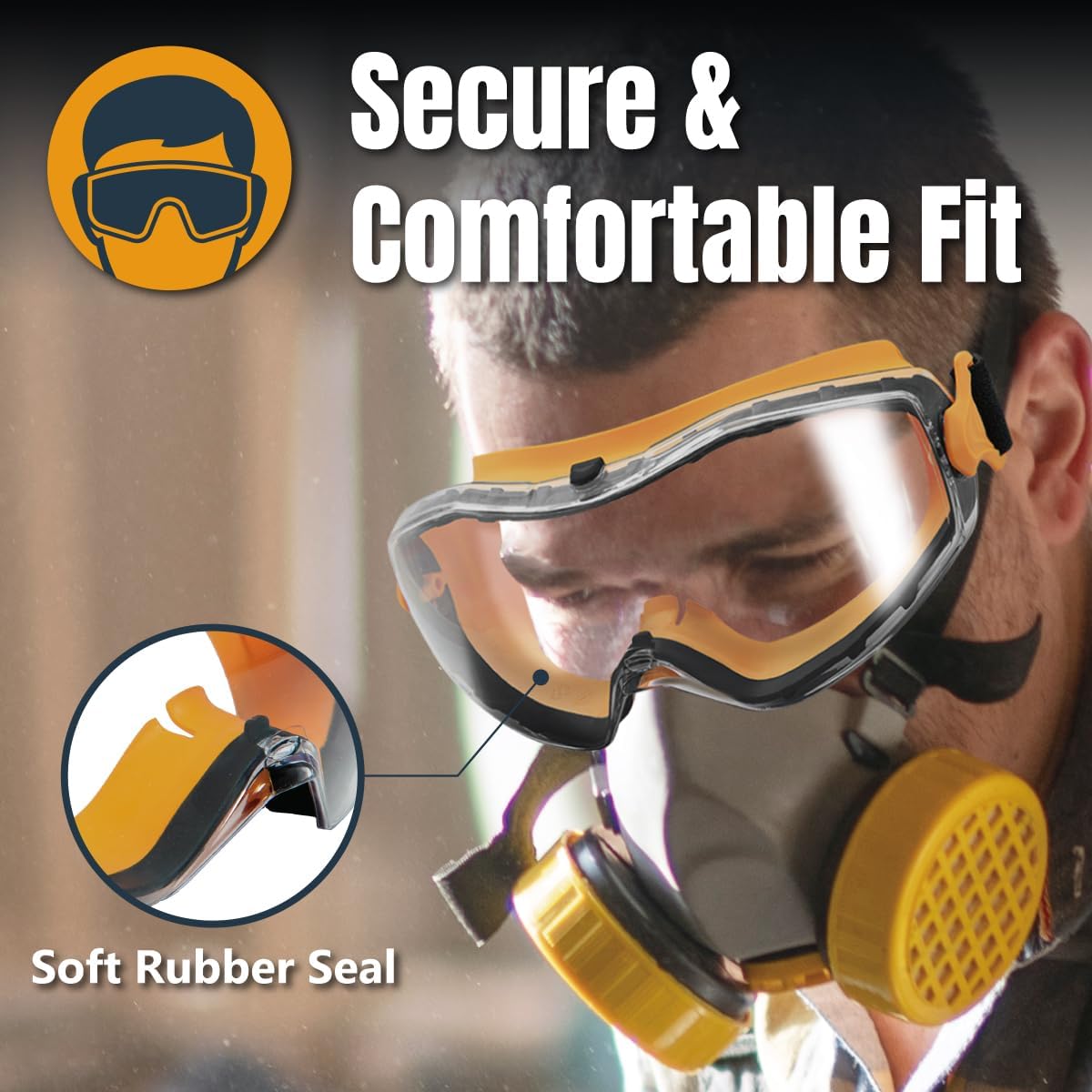 Comfy Protecting Eyewear: Twin-molded rubber body and adjustable elastic strap guarantee a common match; excellent as eye safety goggles, work goggles, or security glasses for woodworking, portray, and all-day use.