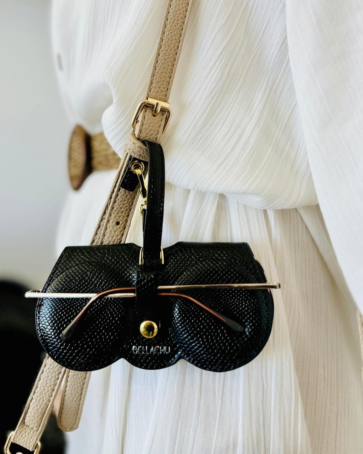 Designed to seamlessly match into your life-style, our circumstances boast a compact measurement, making them extremely simple to slide into your purse or backpack. Whether or not you are speeding out the door or packing for a weekend getaway, these circumstances are your splendid companion, making certain your glasses are all the time inside attain and well-protected. The smooth and moveable design means you may effortlessly hug it onto your bag, offering fast entry and peace of thoughts on the go. Benefit from the excellent mix of practicality and elegance with Bellachu.