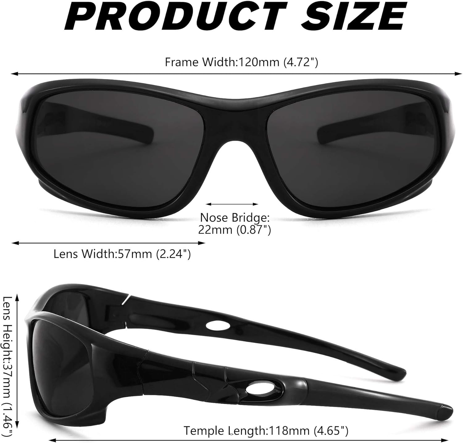 Pro Acme Kids Sunglasses for Boys Girls, Polarized Sports Child Youth Baseball Sunglasses with Strap for Kids Ages 3-12 (All Black)