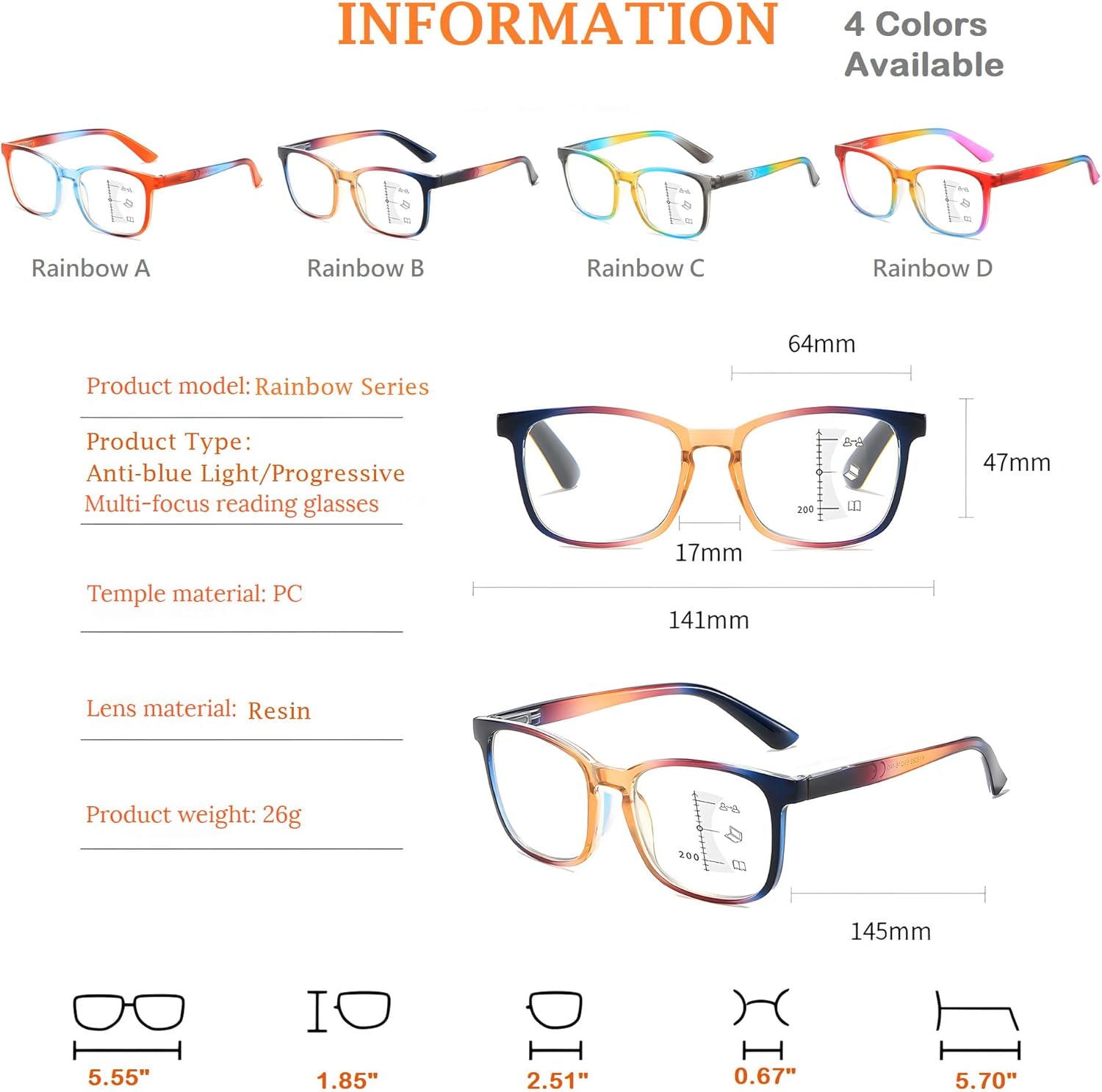 Fashionable Girls’s Progressive Studying Glasses with Gradient Frames & Full Eyecare Elevate your imaginative and prescient and magnificence with our trendy progressive studying glasses that includes vibrant gradient-colored frames. Designed to enhance any outfit, these stylish glasses add a contemporary contact of magnificence to your on a regular basis look whereas offering versatile visible help. Seamless Multifocal Imaginative and prescient: Expertise easy transitions between studying, pc work, and distance viewing with our superior progressive lenses. Remove the necessity for a number of glasses—take pleasure in crystal-clear imaginative and prescient in any respect ranges throughout work, leisure, or day by day actions. Superior Eye Safety: Geared up with premium HD resin lenses that includes twin Blue Mild Filtering and UV400 coating know-how. These lenses actively: Block dangerous blue gentle from digital screens Scale back glare and eye pressure Forestall 100% of UVA/UVB rays Reduce eye fatigue, dryness, and sleep disruption Keep visible readability for indoor and outside use Engineered Consolation: Designed for all-day put on with considerate options: Spring Hinges: Flexibly adapt to numerous face shapes for common consolation Ergonomic Body: Curved design follows pure head contours to stop slipping Safe Match: Stays comfortably positioned throughout energetic motion Premium Reward-Prepared Package deal: Introduced in luxurious packaging together with: Fashionable protecting leather-based case Scratch-resistant microfiber drawstring pouch Comfortable microfiber cleansing fabric Good as a considerate reward for moms, wives, colleagues, or mates—prepared to precise your appreciation immediately. Necessary Observe: First-time progressive lens customers might require 1-2 weeks adjustment interval. We suggest constant put on with out alternating with outdated glasses throughout adaptation. Threat-Free Assurance: Your satisfaction is assured. Contact us instantly in case you encounter any injury or points—we offer 100% after-sales help till you are fully glad. Strive with confidence!