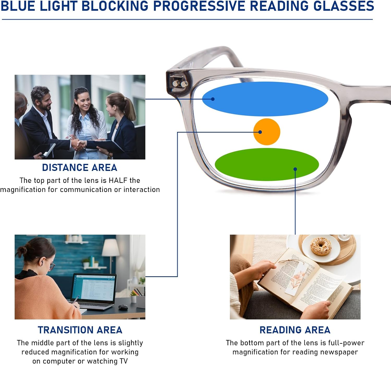 Progressive Multifocus Reading Glasses for Men No Line Bifocal Transition Readers with Metal Core Wire