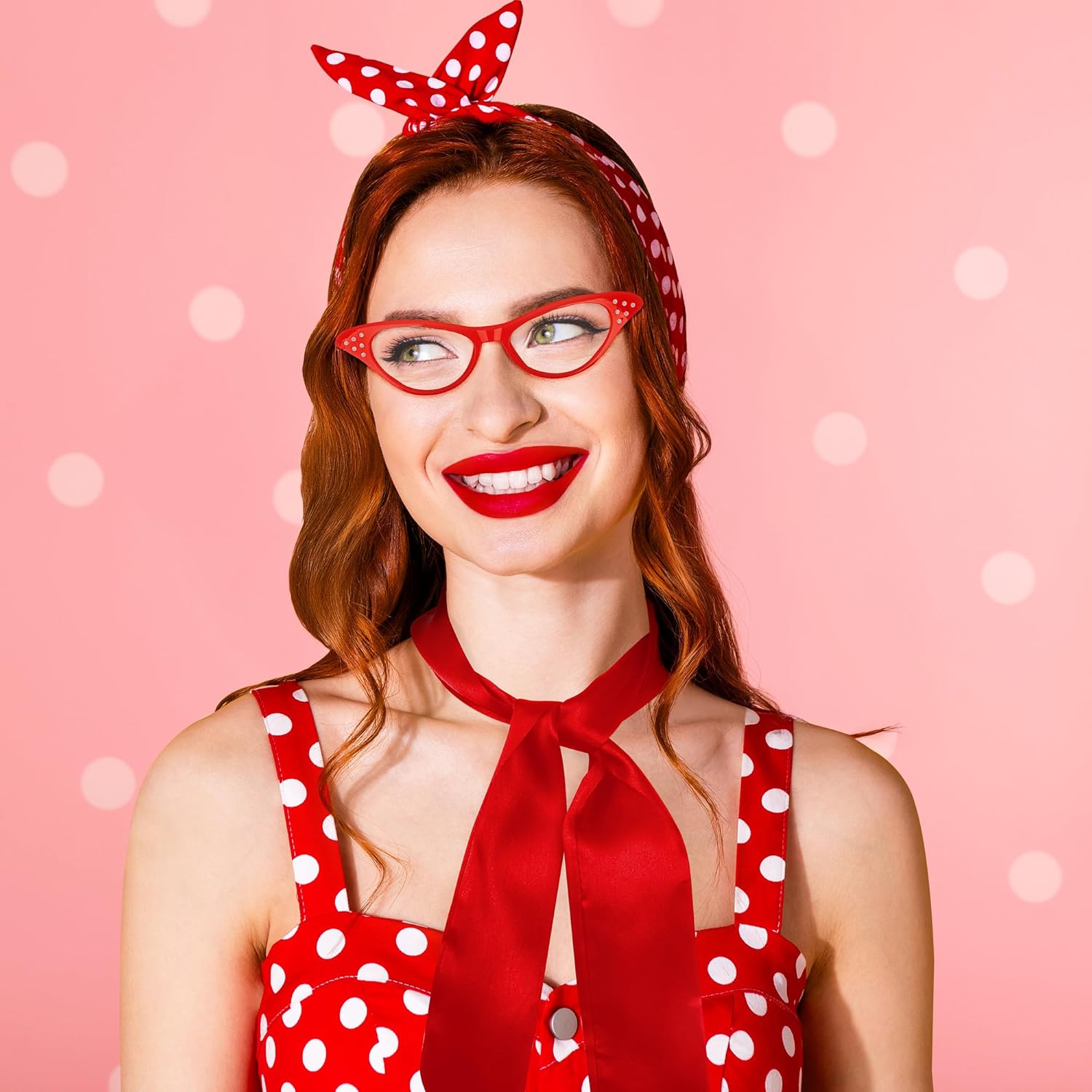 QZYL 6 Pack 1950’s Womens Costume Accessories Set Retro Polka Dot Chiffon Scarf Headband Cat Eye Glasses Earrings Party