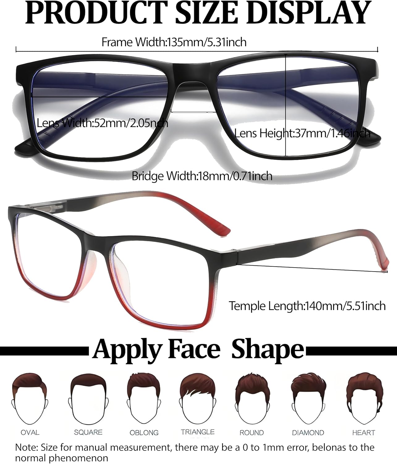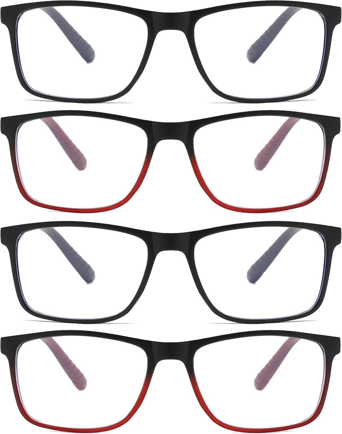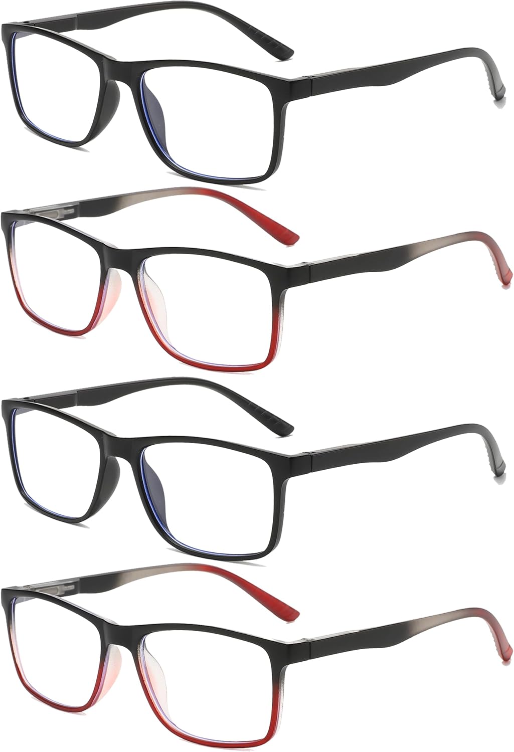 Reading Glasses Men 4-Pack Durable Blue Light Blocking Computer Readers with Spring Hinges, Anti UV Ray/Glare