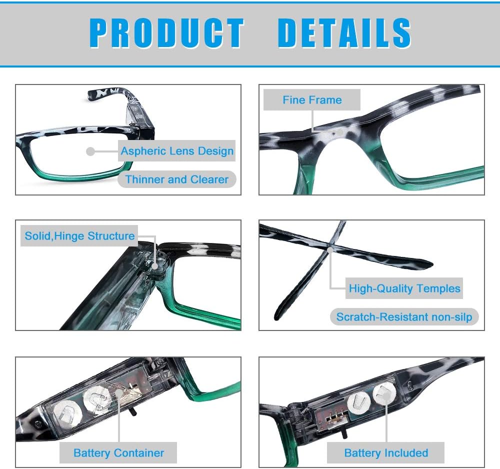 Studying Glasses for Girls Males:Constructed-in extremely shiny LED lights can act as mini torch, enhance imaginative and prescient in the dead of night, and permitting you to work in mattress with out disturbing your sleeping associate.